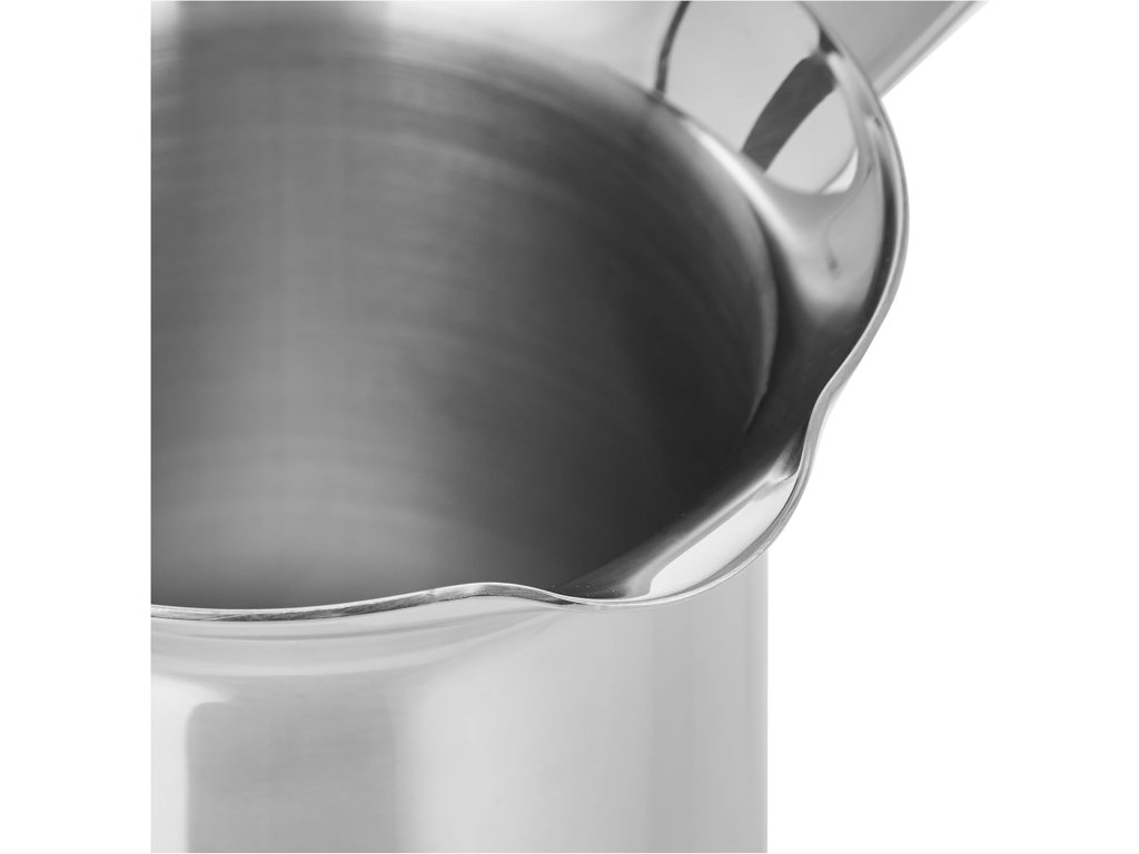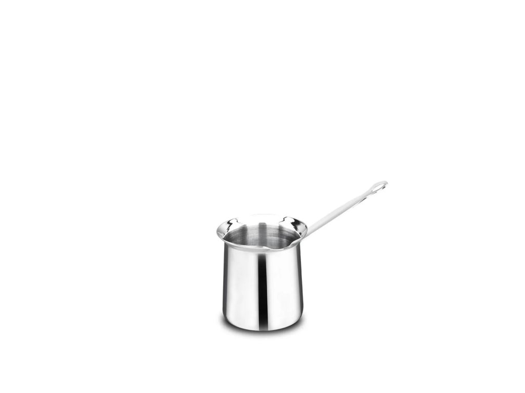 Moderní nerezová džezva je určena pro tradiční přípravu turecké kávy nebo ohřev mléka. Je vyrobena z prvotřídní nerezové oceli, leštěný povrch jí dodává elegantní vzhled. Objem 0,5 l. Snadnou manipulaci s džezvou zajišťuje praktická ergonomicky tvarovaná rukojeť. Lze ji použít na všechny typy sporáku kromě indukce. Džezva je sice magnetická, ale vzhledem k malému průměru nelze zaručit, že indukční vařič sepne. Z toho důvodu ji pro indukce nedoporučujeme.