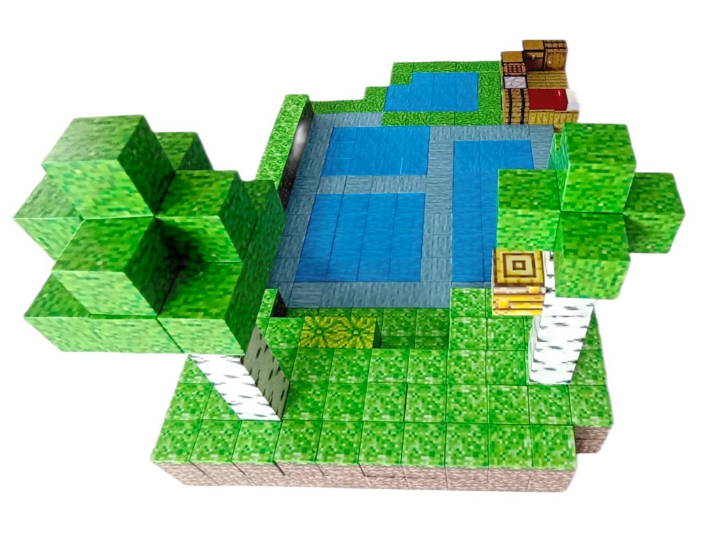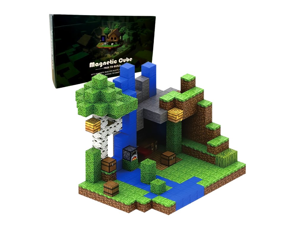 Tento detailně zpracovaný set obsahuje 300 magnetických kostek inspirovaných oblíbenou hrou Minecraft a přináší možnost postavit si vlastní dobrodružství plné řek, jeskyní, stromů i tajemných truhel. Každý prvek je navržen s pixelovou estetikou, kterou fanoušci hry okamžitě poznají a ocení.