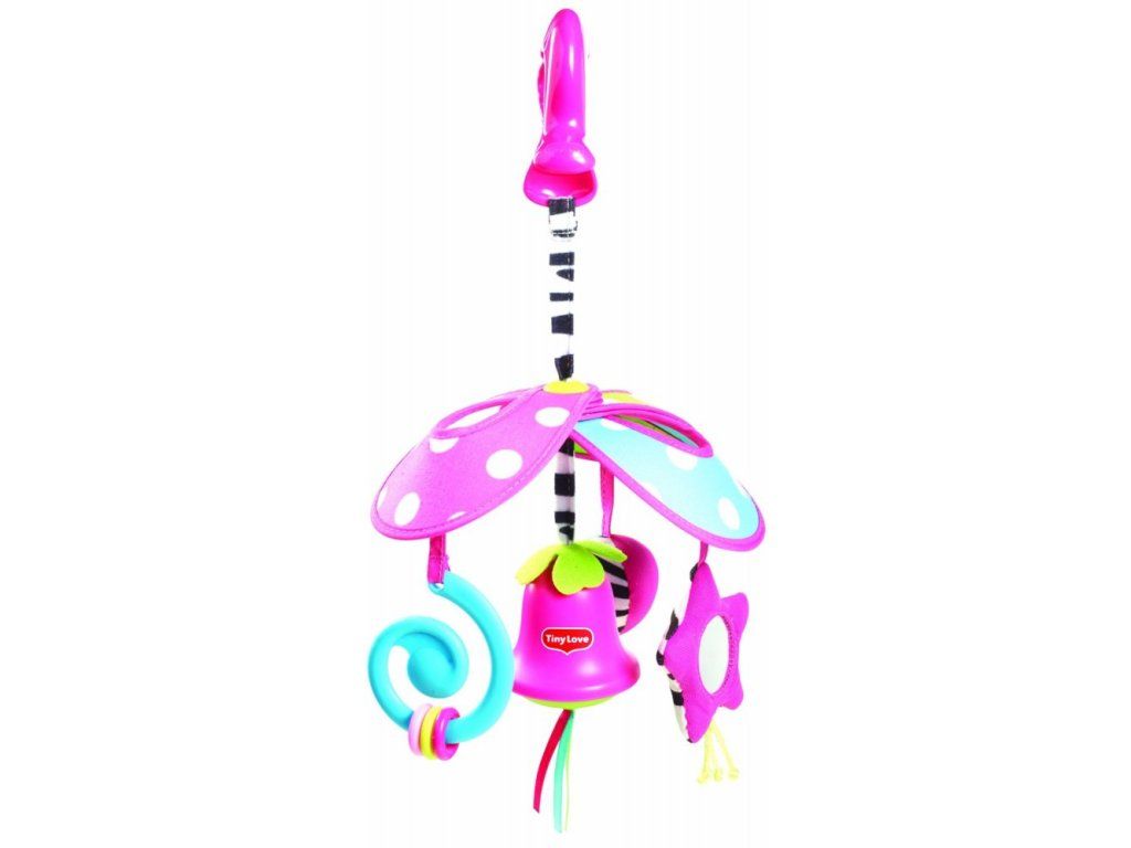 Mini kolotoč na cesty TINY LOVE Princess. Závěsná hračka Tiny Love zajistí zábavu pro vaše dítě na cestách. Díky plastovému klipu ji lze libovolně zavěsit na autosedačku, kočárek apod. Zvoneček při pohybu jemně cinká. Zavěšené hračky chrastí a šustí. Bezpečné zrcátko, výrazné barvy a různorodé tvary a textury udrží pozornost dítěte. Vhodné pro děti od narození. Rozměrdélka: cca 30cm; šířka cca 20 cm.Doplňkové parametry