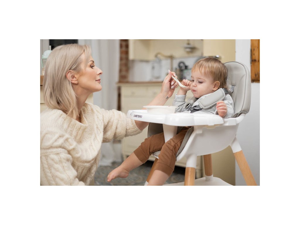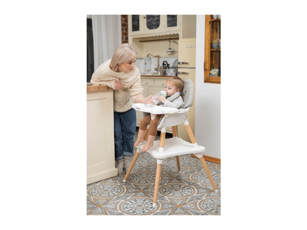 Objevte kouzlo multifunkční jídelní židle TUVA. Styl, bezpečnost a pohodlí v jednom. Představujeme vám revoluční produkt, který změní způsob, jakým vy a vaše dítě zažíváte každodenní chvíle u stolu. Jídelní židle TUVA je více než jen obyčejná židle – je to dokonalé spojení jedinečného skandinávského designu a inovativní funkčnosti, které zajišťují maximální pohodlí a bezpečí pro vaše dítě. Proč byste měli zvolit právě TUVA? Pojďme se podívat blíže. Multifunkčnost, která vás ohromí. TUVA není jen obyčejná vysoká židle. Je to multifunkční kousek nábytku, který se snadno přizpůsobí vašim potřebám. Stačí pár pohybů a z vysoké židle se stane stylová sestava židle a stolu. Žádné složité demontáže, jen rychlé a jednoduché přizpůsobení – ideální pro rodiče, kteří hledají funkčnost a praktičnost. Jedinečný skandinávský design. Vzhled je důležitý. TUVA se pyšní čistými liniemi, minimalistickým designem a přírodními materiály, které dokonale zapadnou do každého moderního interiéru. Žádné kompromisy mezi stylem a funkčností – TUVA nabízí obojí. Bezpečnost na prvním místě. TUVA je vybavena pětibodovým pásem a dalším zabezpečením na podnosu, které zabraňuje sklouznutí dítěte. Váš malý poklad bude v bezpečí, a vy budete moci být v klidu. Pohodlí pro dítě i rodiče. Polohovatelný dvojitý tác se dvěma místy na šálek zajišťuje, že vše potřebné bude po ruce. Sedák s odnímatelným čalouněním z ekokůže je měkký a snadno se čistí – konec starostí s úklidem po jídle. Stůl, který zároveň slouží jako podnožka, přispívá k pohodlí vašeho dítěte během každého jídla. Robustní a praktická konstrukce. Masivní dřevěné nohy s protiskluzovými podložkami chrání vaši podlahu proti poškrábání a zároveň zajišťují stabilitu židle. Navíc je TUVA lehká a snadno se přenáší – váží pouze 7 kg, což oceníte při každodenním používání. Pro děti od 6 měsíců do 4 let. TUVA je určena pro děti, které mohou samostatně sedět, ve věku od 6 měsíců do přibližně 3-4 let s hmotností do 15 kg. Je to investice, která vám vydrží několik let a přizpůsobí se růstu vašeho dítěte. Technické údaje: Věkové rozmezí: od 6 měsíců do 3-4 let (s maximální hmotností do 15 kg v případě vysoké židle). Vnější rozměry: 62x62x102 cm (vysoká židle), 40x40x64 cm (židle), 62x62x40 cm (stůl). Rozměry sedáku: 26x28 cm. Výška opěradla: 39 cm. Hmotnost:7 kg. Certifikovaná kvalita. TUVA splňuje přísné evropské normy EN 14988:2017-10, což je zárukou kvality a bezpečnosti. Jídelní židle TUVA není jen investicí do kvalitního nábytku, ale i do pohodlí a bezpečí vašeho dítěte. Je multifunkční, stylová, bezpečná a pohodlná. Nechte TUVA, aby se stala nedílnou součástí vašeho domova a užívejte si každého jídla s klidem a radostí. Nečekejte a objednejte si TUVA ještě dnes – udělejte krok k lepší budoucnosti pro vás a vaše dítě!Doplňkové parametry