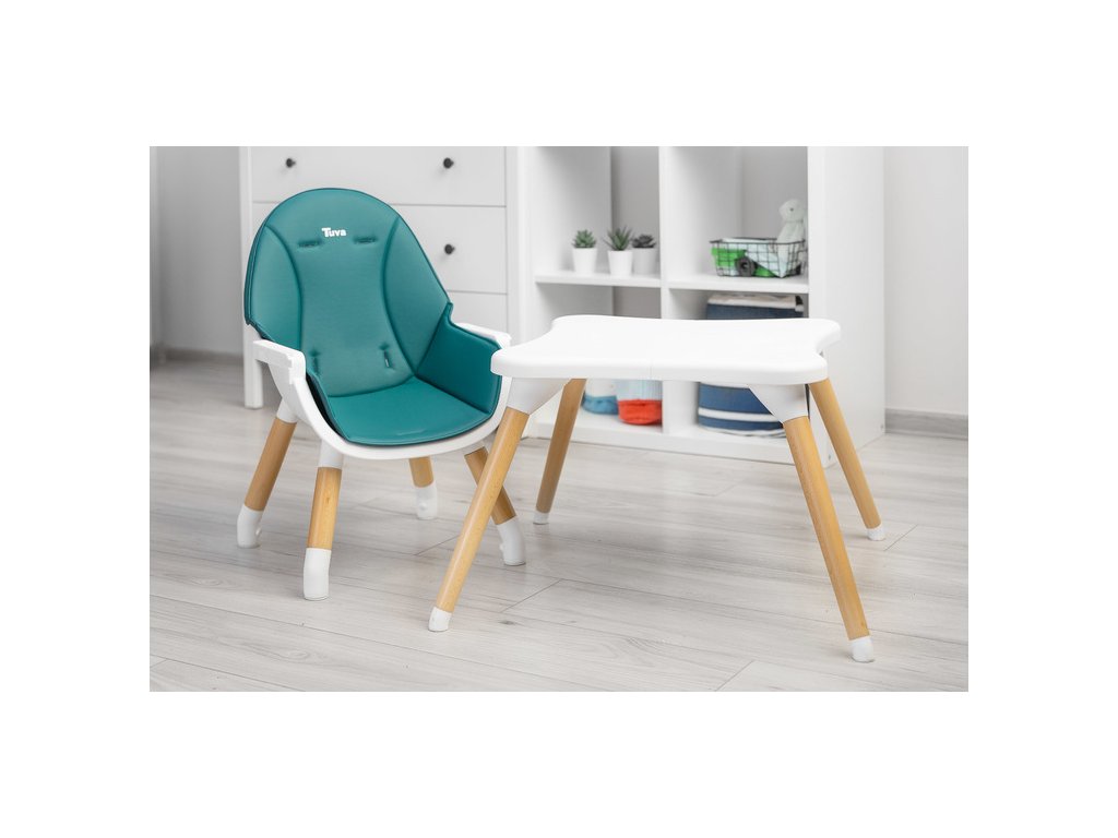 Objevte kouzlo multifunkční jídelní židle TUVA. Styl, bezpečnost a pohodlí v jednom. Představujeme vám revoluční produkt, který změní způsob, jakým vy a vaše dítě zažíváte každodenní chvíle u stolu. Jídelní židle TUVA je více než jen obyčejná židle – je to dokonalé spojení jedinečného skandinávského designu a inovativní funkčnosti, které zajišťují maximální pohodlí a bezpečí pro vaše dítě. Proč byste měli zvolit právě TUVA? Pojďme se podívat blíže. Multifunkčnost, která vás ohromí. TUVA není jen obyčejná vysoká židle. Je to multifunkční kousek nábytku, který se snadno přizpůsobí vašim potřebám. Stačí pár pohybů a z vysoké židle se stane stylová sestava židle a stolu. Žádné složité demontáže, jen rychlé a jednoduché přizpůsobení – ideální pro rodiče, kteří hledají funkčnost a praktičnost. Jedinečný skandinávský design. Vzhled je důležitý. TUVA se pyšní čistými liniemi, minimalistickým designem a přírodními materiály, které dokonale zapadnou do každého moderního interiéru. Žádné kompromisy mezi stylem a funkčností – TUVA nabízí obojí. Bezpečnost na prvním místě. TUVA je vybavena pětibodovým pásem a dalším zabezpečením na podnosu, které zabraňuje sklouznutí dítěte. Váš malý poklad bude v bezpečí, a vy budete moci být v klidu. Pohodlí pro dítě i rodiče. Polohovatelný dvojitý tác se dvěma místy na šálek zajišťuje, že vše potřebné bude po ruce. Sedák s odnímatelným čalouněním z ekokůže je měkký a snadno se čistí – konec starostí s úklidem po jídle. Stůl, který zároveň slouží jako podnožka, přispívá k pohodlí vašeho dítěte během každého jídla. Robustní a praktická konstrukce. Masivní dřevěné nohy s protiskluzovými podložkami chrání vaši podlahu proti poškrábání a zároveň zajišťují stabilitu židle. Navíc je TUVA lehká a snadno se přenáší – váží pouze 7 kg, což oceníte při každodenním používání. Pro děti od 6 měsíců do 4 let. TUVA je určena pro děti, které mohou samostatně sedět, ve věku od 6 měsíců do přibližně 3-4 let s hmotností do 15 kg. Je to investice, která vám vydrží několik let a přizpůsobí se růstu vašeho dítěte. Technické údaje: Věkové rozmezí: od 6 měsíců do 3-4 let (s maximální hmotností do 15 kg v případě vysoké židle). Vnější rozměry: 62x62x102 cm (vysoká židle), 40x40x64 cm (židle), 62x62x40 cm (stůl). Rozměry sedáku: 26x28 cm. Výška opěradla: 39 cm. Hmotnost:7 kg. Certifikovaná kvalita. TUVA splňuje přísné evropské normy EN 14988:2017-10, což je zárukou kvality a bezpečnosti. Jídelní židle TUVA není jen investicí do kvalitního nábytku, ale i do pohodlí a bezpečí vašeho dítěte. Je multifunkční, stylová, bezpečná a pohodlná. Nechte TUVA, aby se stala nedílnou součástí vašeho domova a užívejte si každého jídla s klidem a radostí. Nečekejte a objednejte si TUVA ještě dnes – udělejte krok k lepší budoucnosti pro vás a vaše dítě!Doplňkové parametry