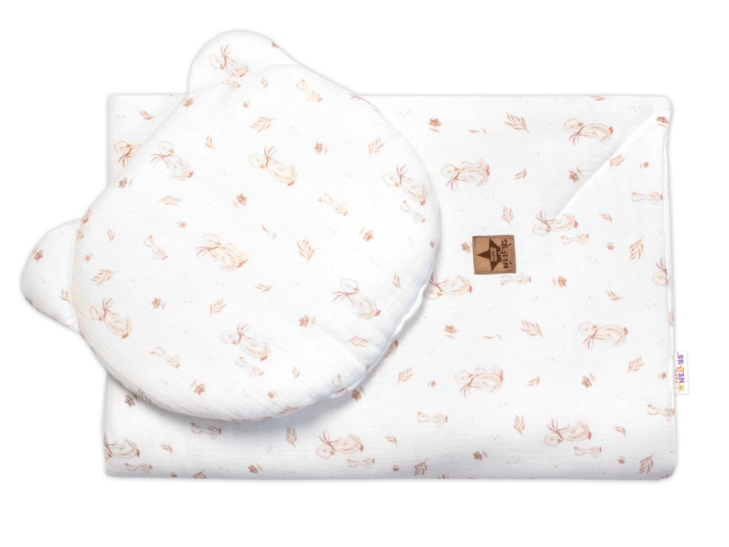 Mušelínová sada GOOSE Teddy 30x35cm, 70x100cm, 2D, Baby Nellys, bílá, Husičky