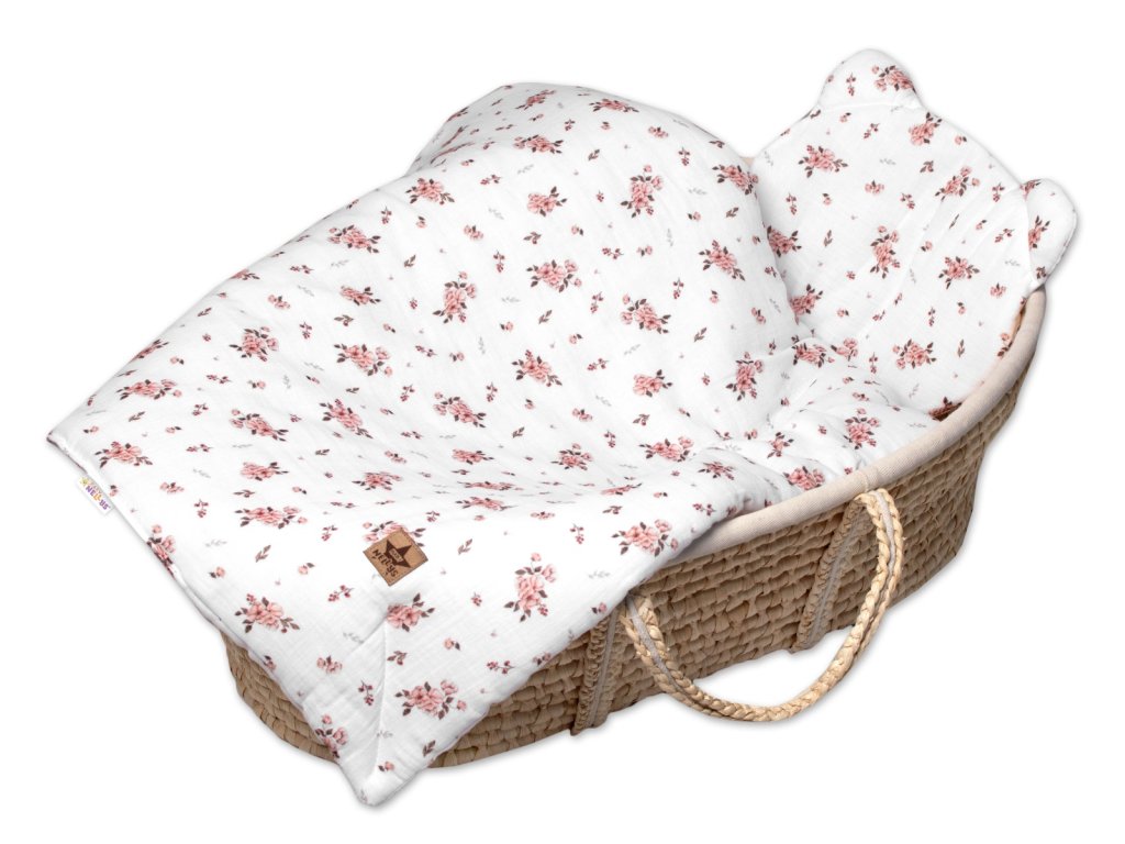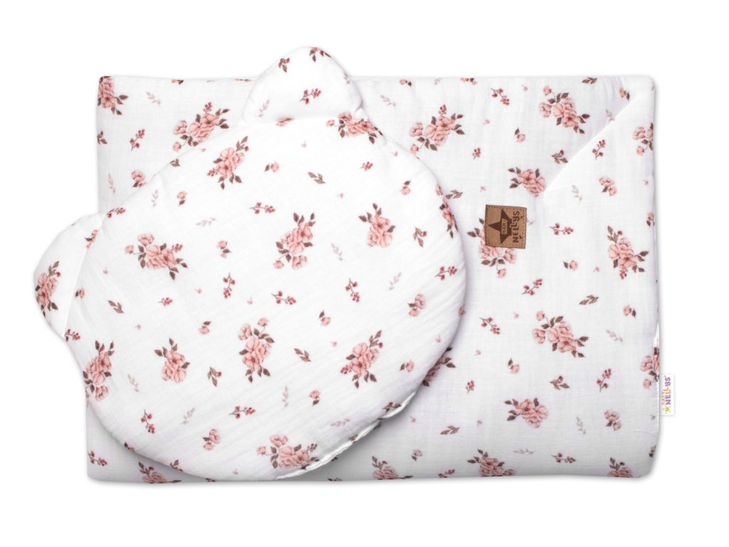 Mušelinová sada Teddy Little Flowers 30x35cm, 70x100cm, 2D, Baby Nellys, bílá