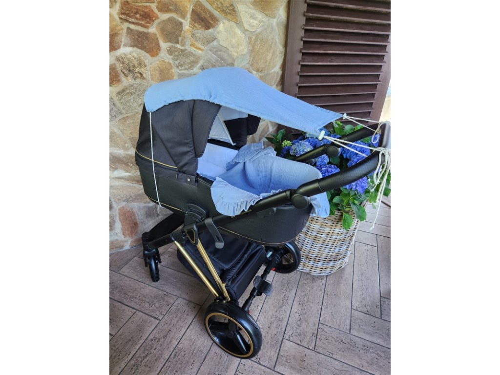 Mušelínová sluneční stříška na kočárek NATURE - jeans