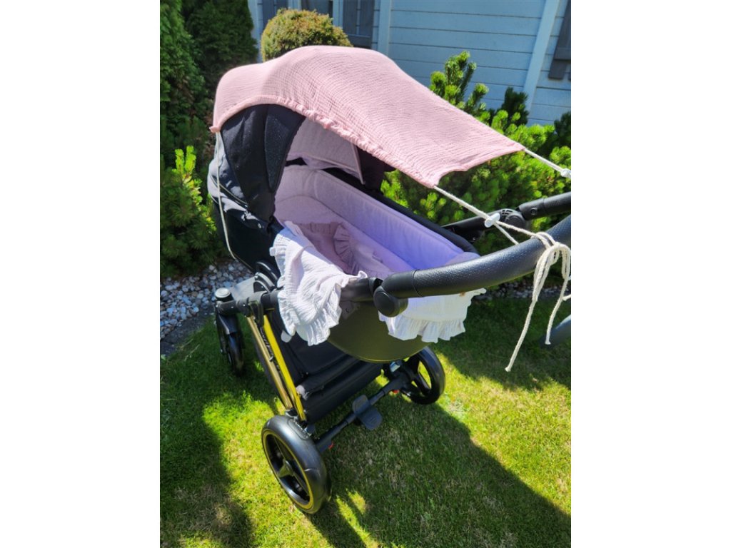 Mušelínová sluneční stříška na kočárek NATURE - pudrově růžová