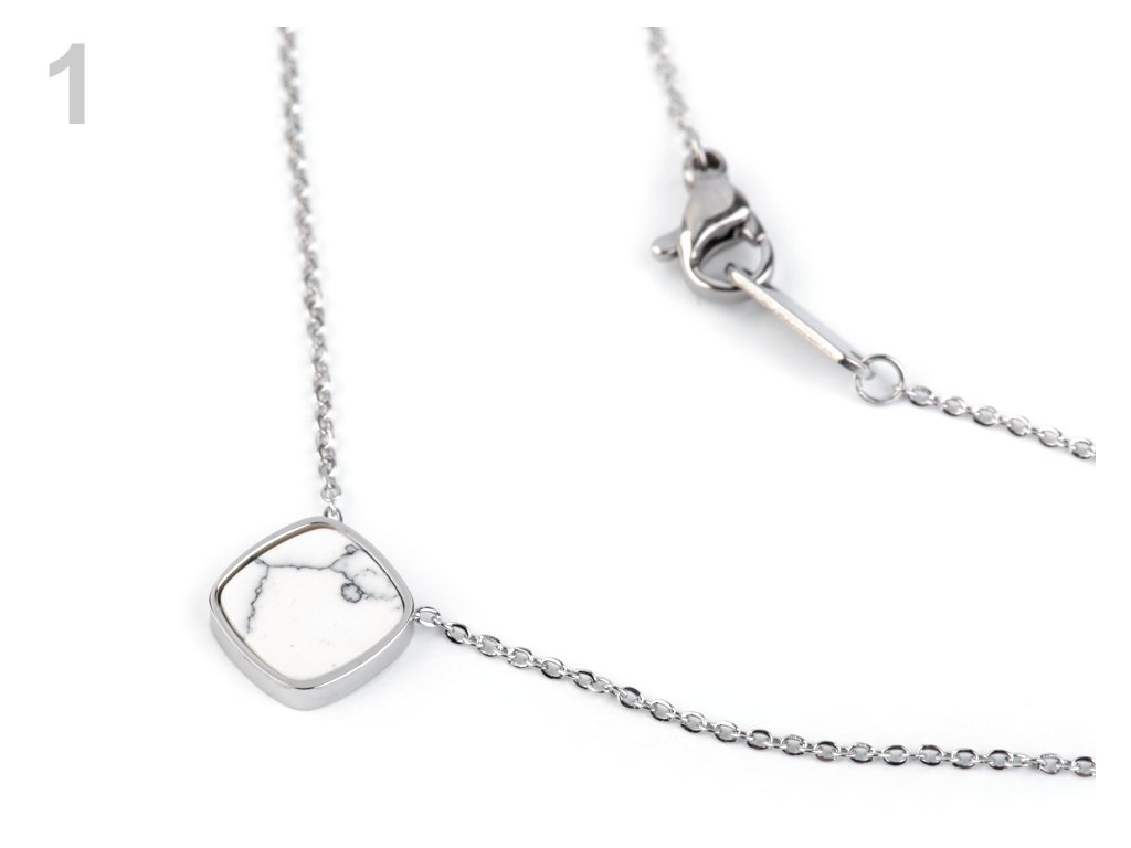 Je velice univerzální, hodí se do výstřihů halenek, šatů i k tričkům. Přívěsek velice věrně napodobuje drahý kámen. Je zavěšený ve středu jemného očkového řetízku.