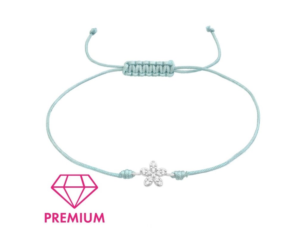 Náramek pro děti se stříbrnou ozdobou Květ s bílým zirkonem, mátový