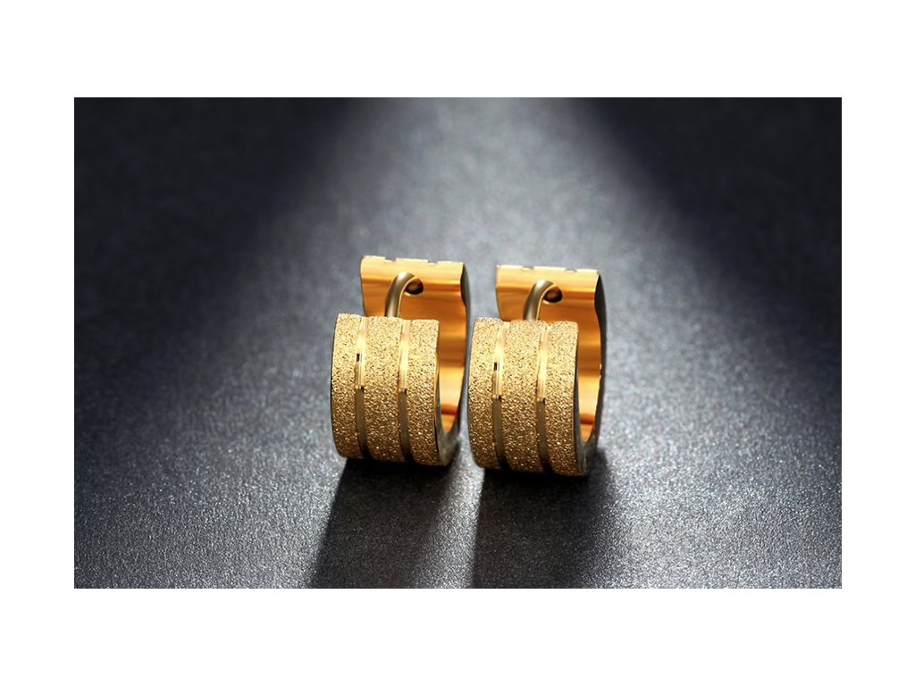 Kroužky zdobí gravírované pruhy po celé délce . Hodí se ke každodennímu nošení. Skvěle doplní byznys styl oblékání, jeansovou módu i ležérní outfity. Náušnice jsou velice decentní, nepotlačí ostatní módní doplňky.