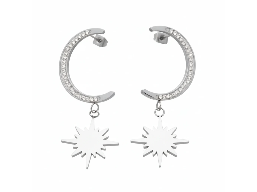 Unikátní tvar měsíce a hvězdy s třpytivými zirkony dodává náušnicím šmrnc a půvab. Ručně dohotovené