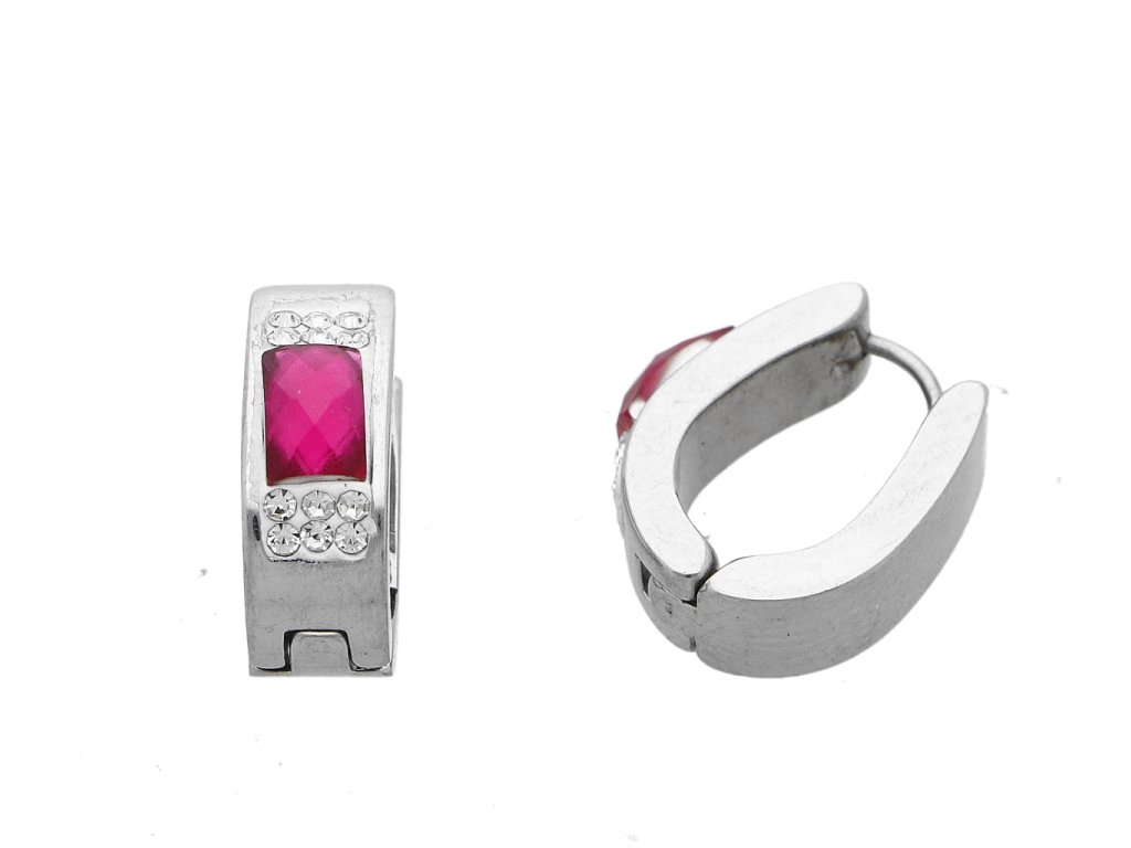 Náušnice ocelové ve tvaru U se skleněným proužkem růžová + dárkové balení
