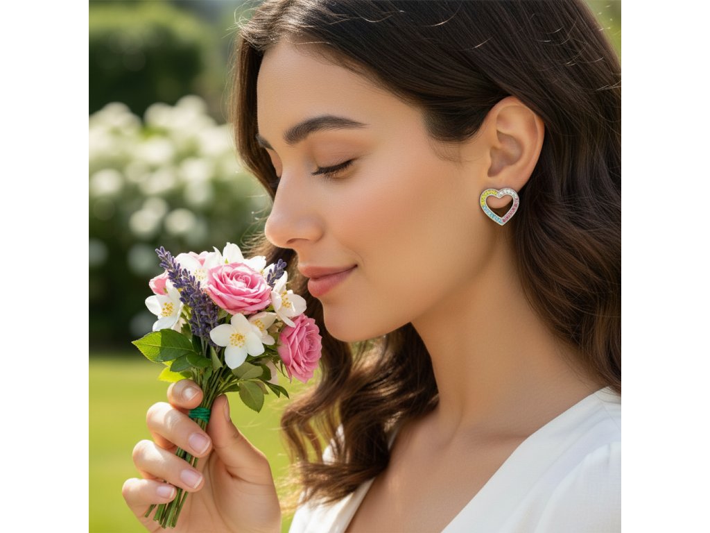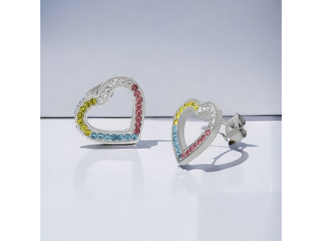 Náušnice srdíčka s kamínky z chirurgické oceli CKR770