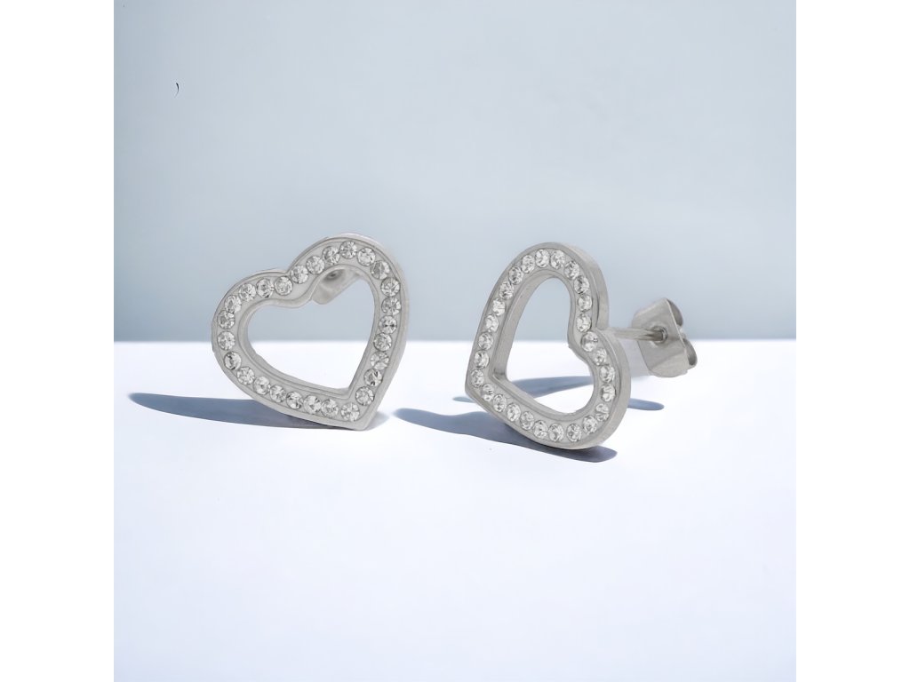 Náušnice srdíčka s kamínky z chirurgické oceli CKR771