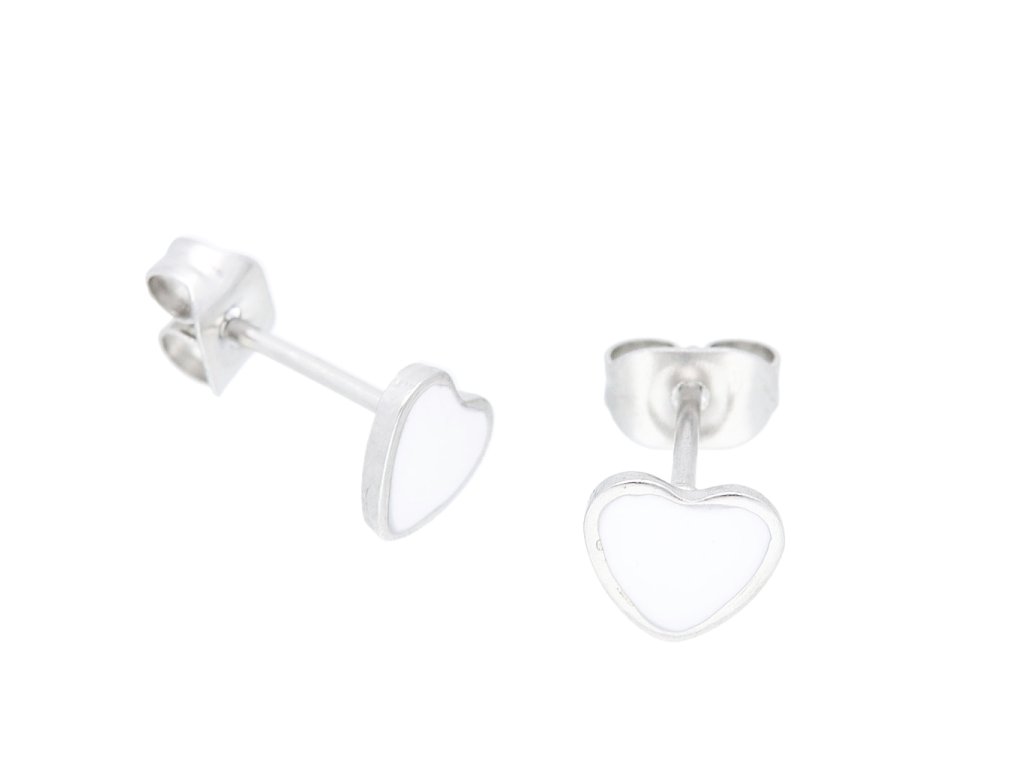 Náušnice srdíčka z chirurgické oceli bílá + dárkové balení