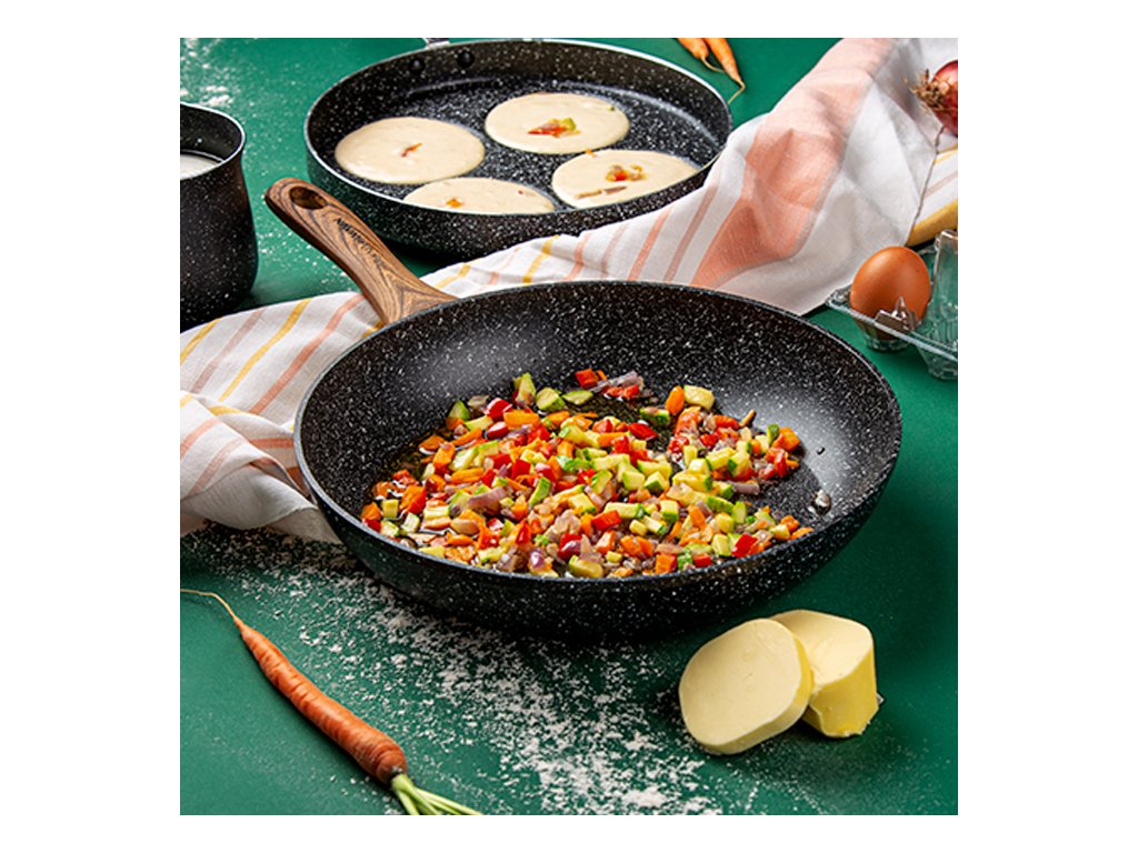 - pánev je vyrobena z litého hliníku a vnější plocha je opatřena granitovou vrstvou.