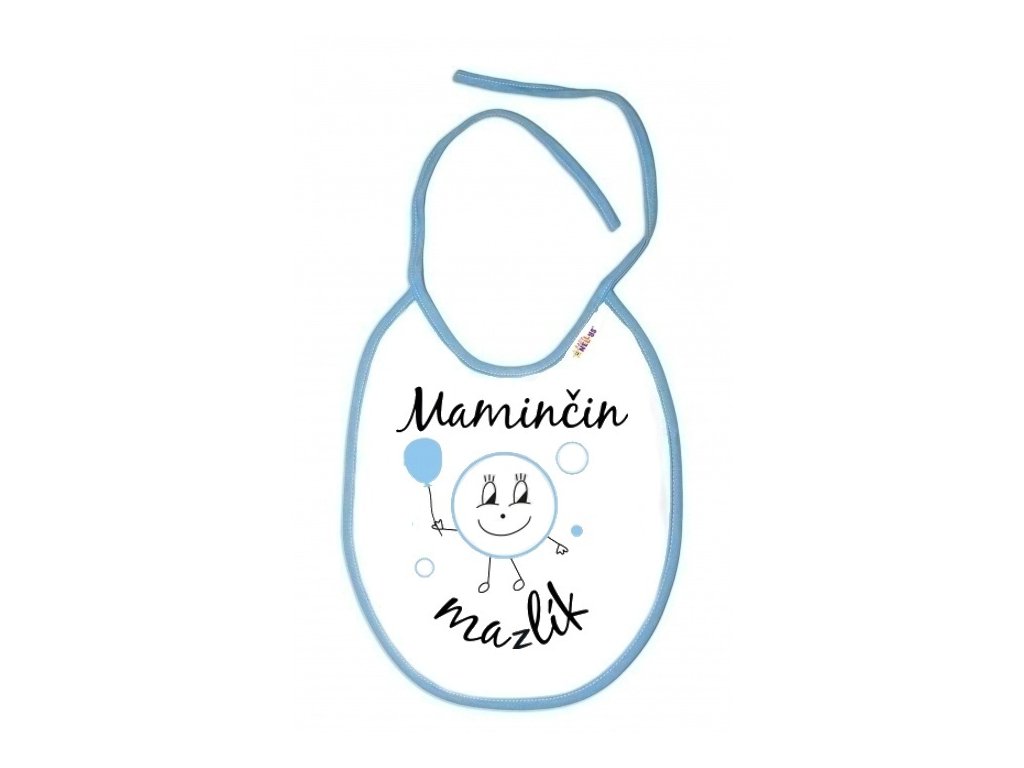 Nepromokavý bryndáček Maminčin mazlík, 24 x 27 cm - bílý s modrým lemem