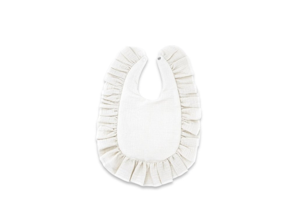Nepromokavý mušelínový bryndáček s volánkem Nature - smetanový