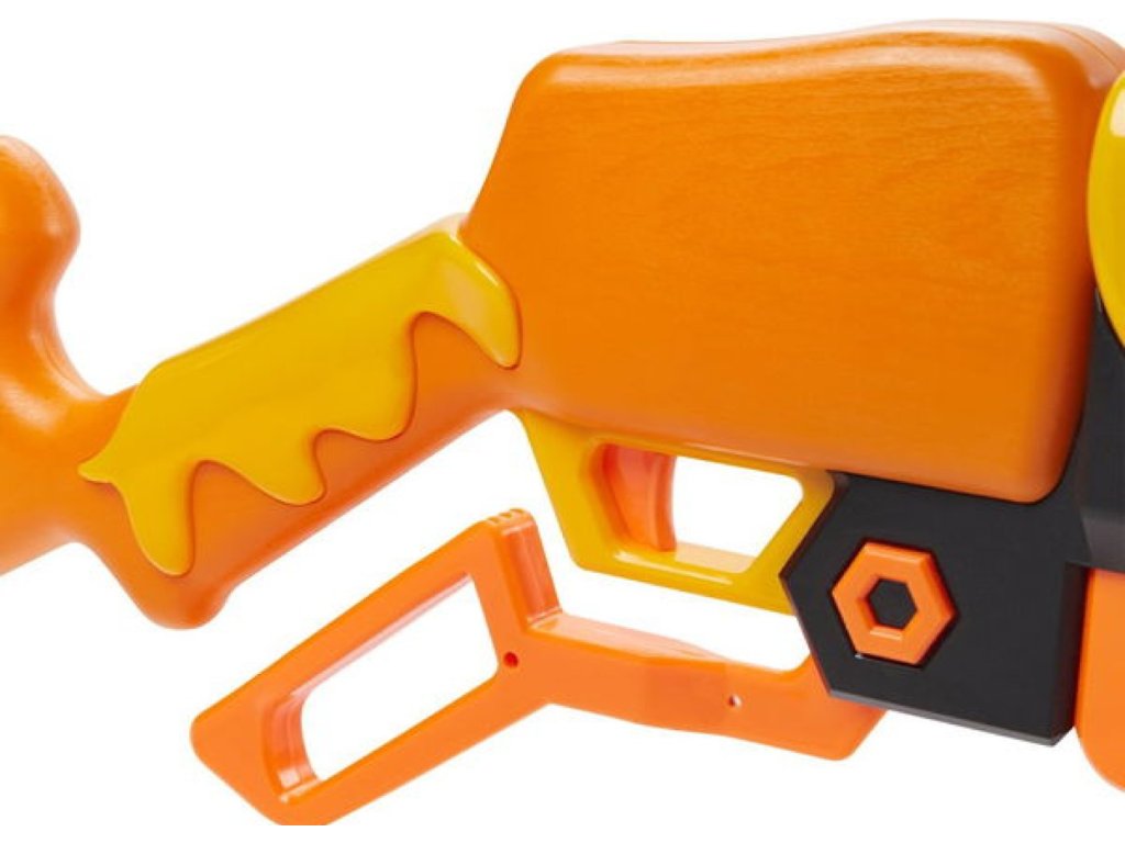 Tělo blasteru je vyrobeno z kvalitního a odolného plastu, přičemž ergonomický tvar rukojeti zajišťuje pohodlné držení během akce. Vzhled připomínající kapky medu a včelí plástve přidává blasteru zábavný vizuální styl, který odráží tematiku herního režimu.
