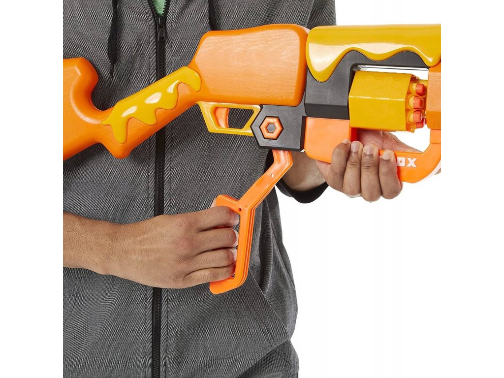 Blaster je vybaven bubnovým zásobníkem na 8 šipek, který umožňuje rychlou a plynulou střelbu bez nutnosti neustálého dobíjení. Mechanické natahování je snadné a vhodné i pro menší děti. Součástí balení je 8 pěnových šipek Nerf Elite, které jsou měkké a bezpečné pro hru uvnitř i venku.