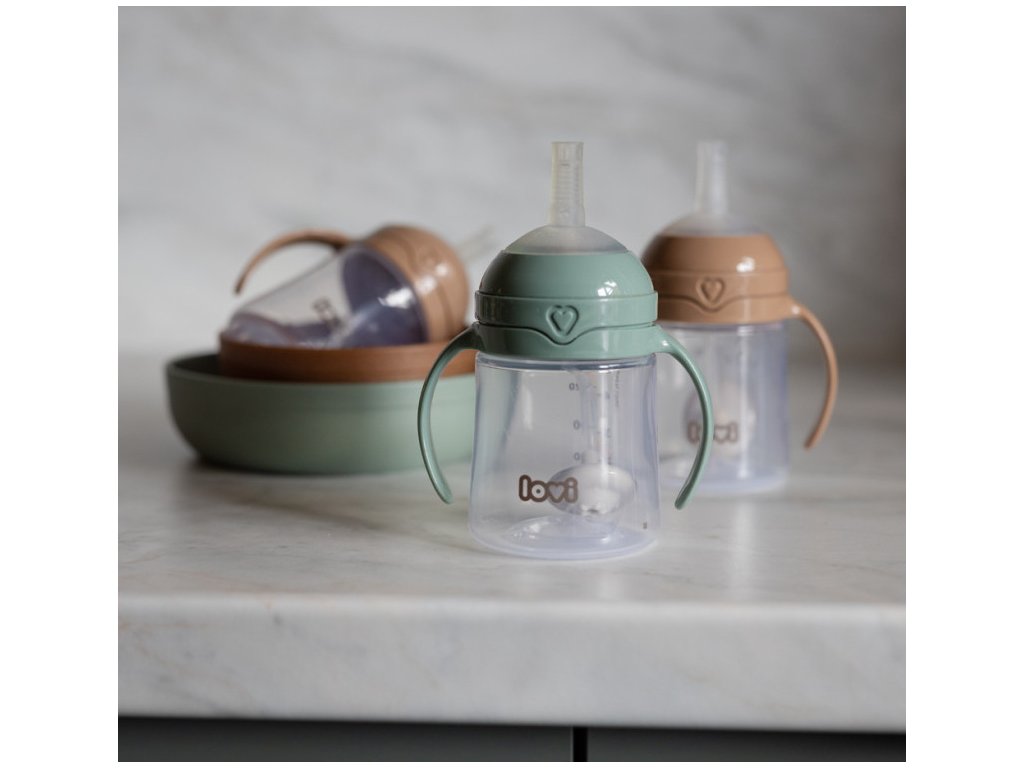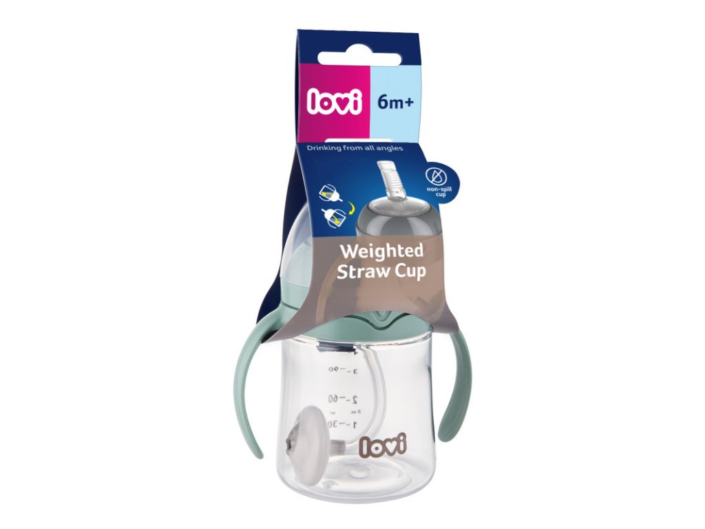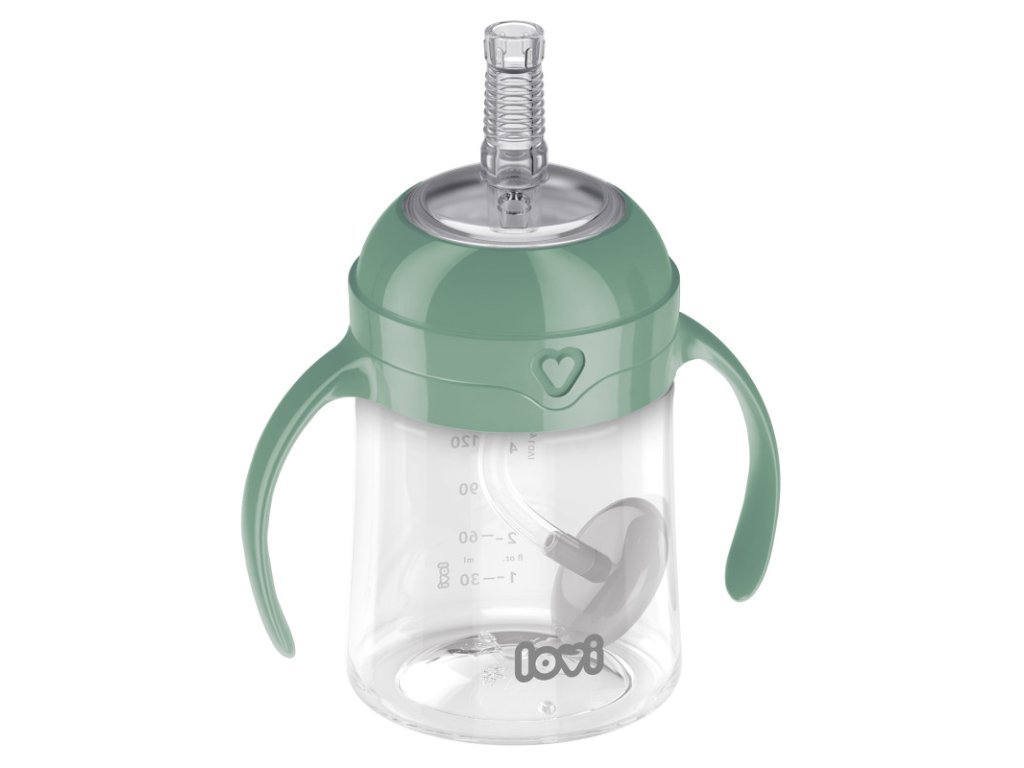 Nevylévací hrníček s brčkem a závažím Lovi Straw Cup, 150 ml, zelený