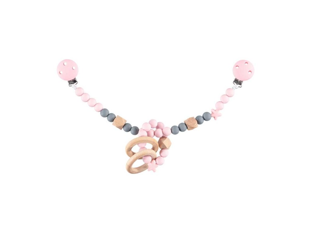 Nibbling Silikonový řetízek s kousátkem na kočárek - růžová / šedá