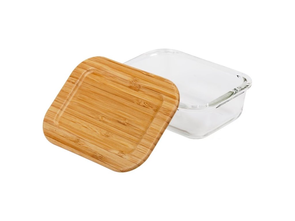 Obdélníková skleněná dóza s bambusovým víčkem 300 ml