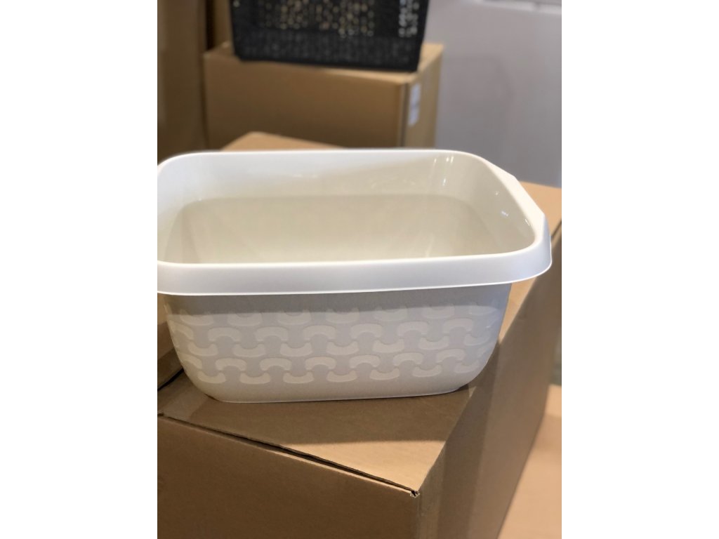 Obdelníková mísa vyrobená z odolného plastu má objem 8l, rozměry 35,6 x 29,2 x 14,2 cm. Díky všestrannému použití se hodí do každé domácnosti. Jemný dekor na bocích lavoru vytváří moderní, decentní vzhled. Snadná údržba