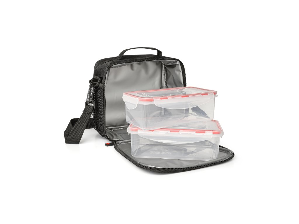 Vnitřní část tašky je tepelně izolovaná a vytváří "efekt ledničky", ta pak lépe chrání jídlo a jeho čerstvost během přepravy. Taška má elegantní, moderní design, rukojeť a nastavitelnou pásku přes rameno. Vnitřní síťovaná kapsa je ideální na ukládání příborů, ubrousků a vnější kapsička je připravena na vaše osobní předměty.
