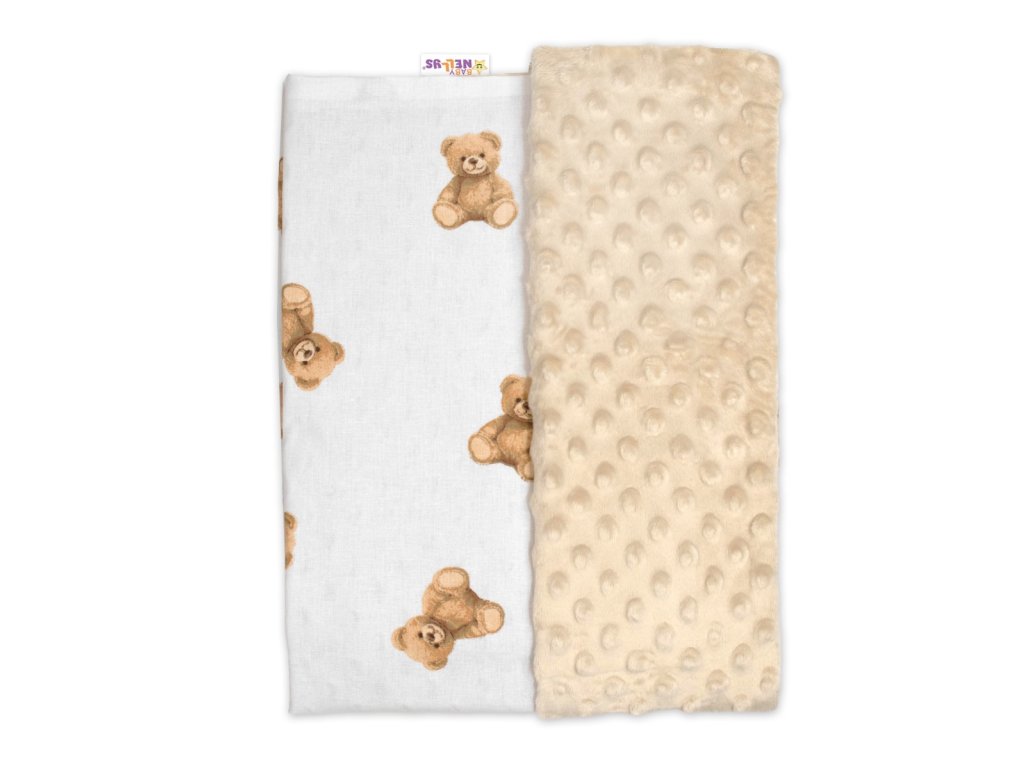 Oboustranná deka, Bavlna/Minky 100 x 75 cm, Míša - bílá s potiskem