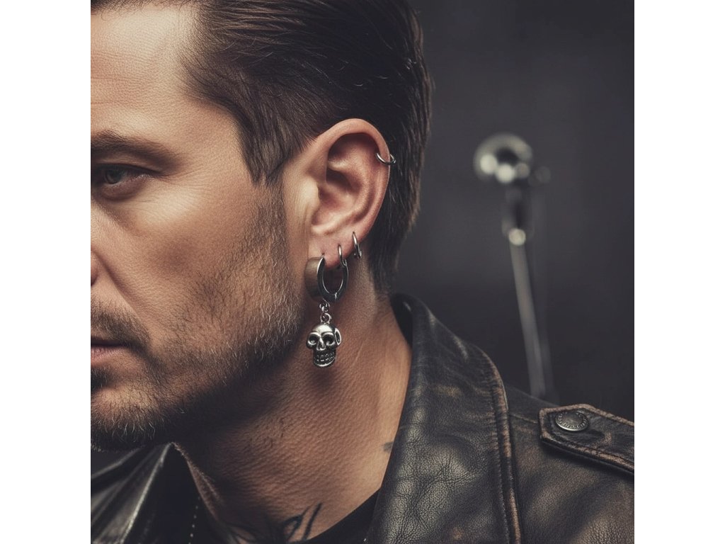 Ocelové náušnice kroužky s lebkou + dárkové balení