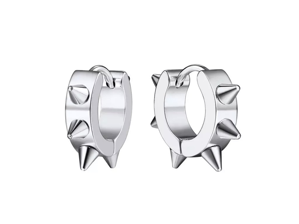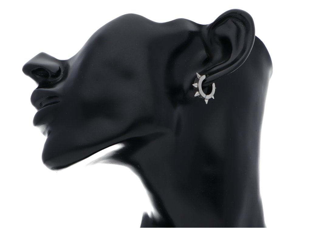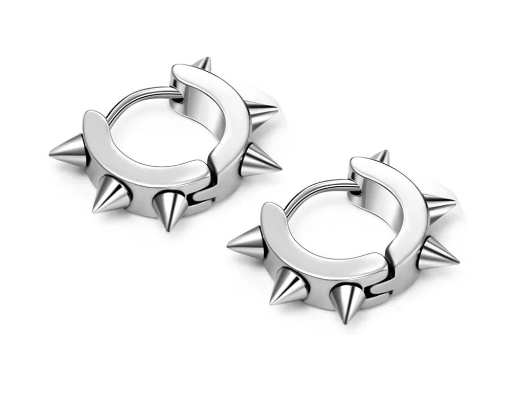 Ocelové náušnice - kroužky s ostny. Skvěle doplní byznys styl oblékání, jeansovou módu i ležérní outfity. Dají se rozevřít, zapínají se zacvaknutím.