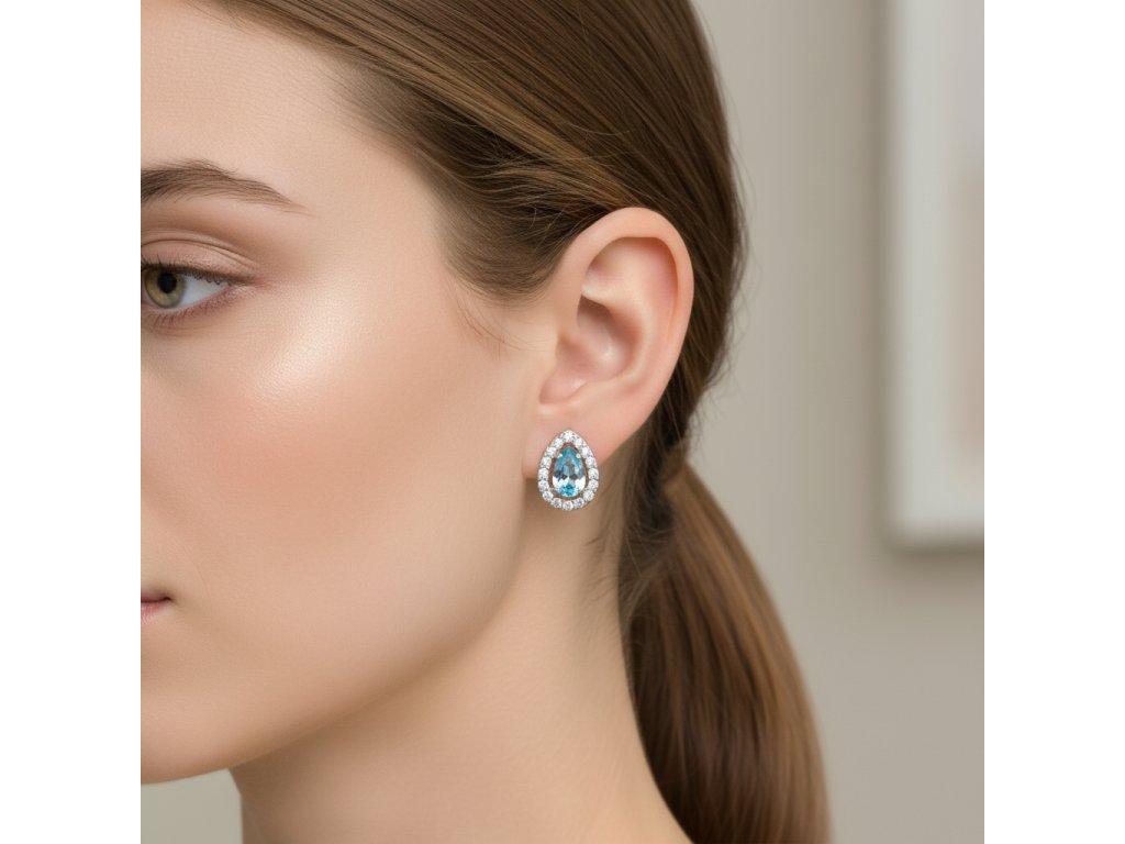 Akvamarínový zirkon vytváří úžasné světelné efekty, které přitahují pozornost a dodávají náušnicím neodolatelný lesk. Bezpečné zapínání