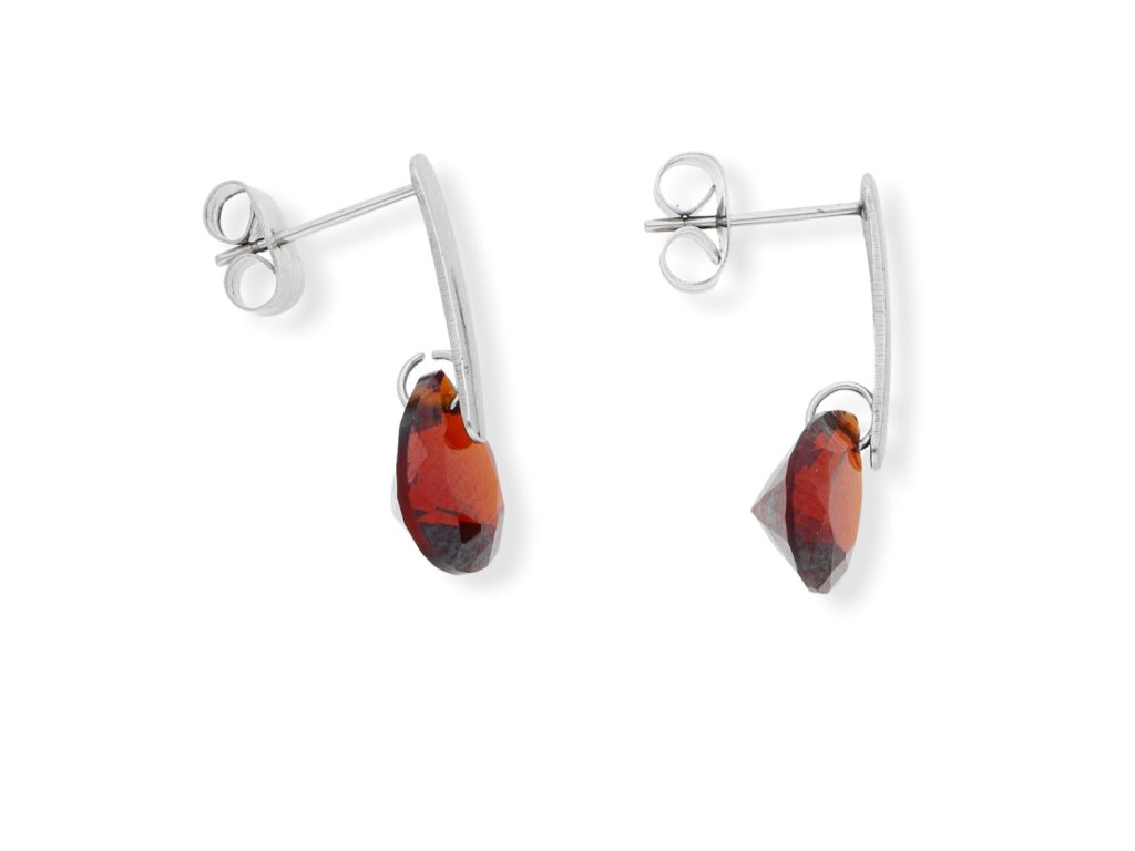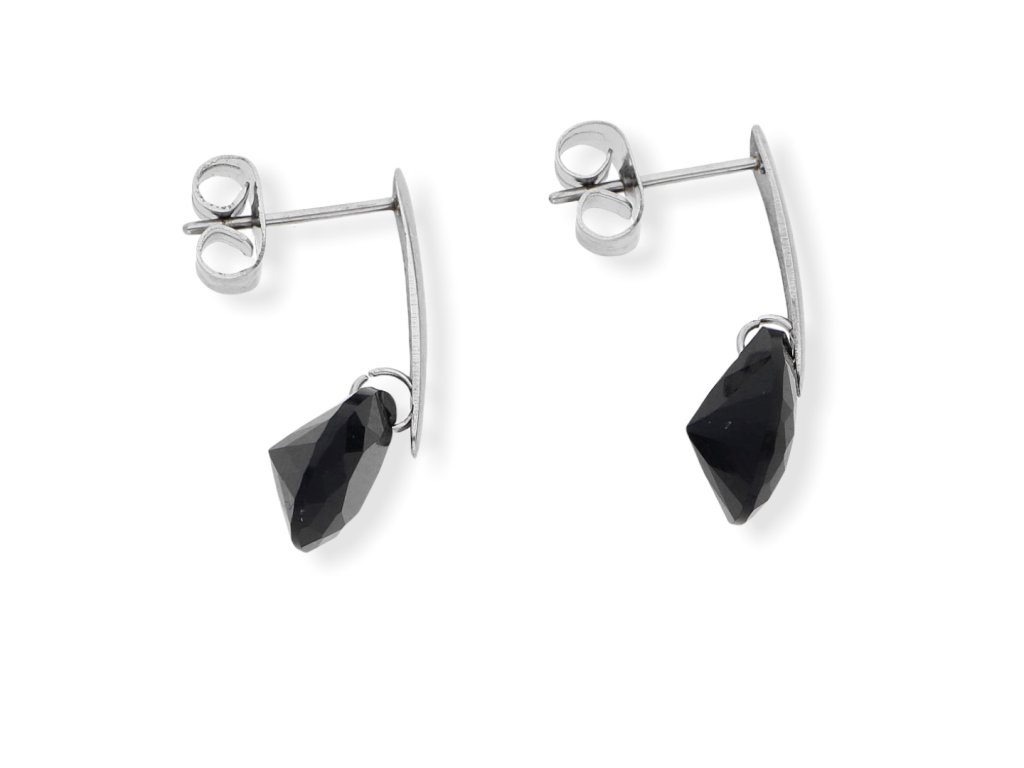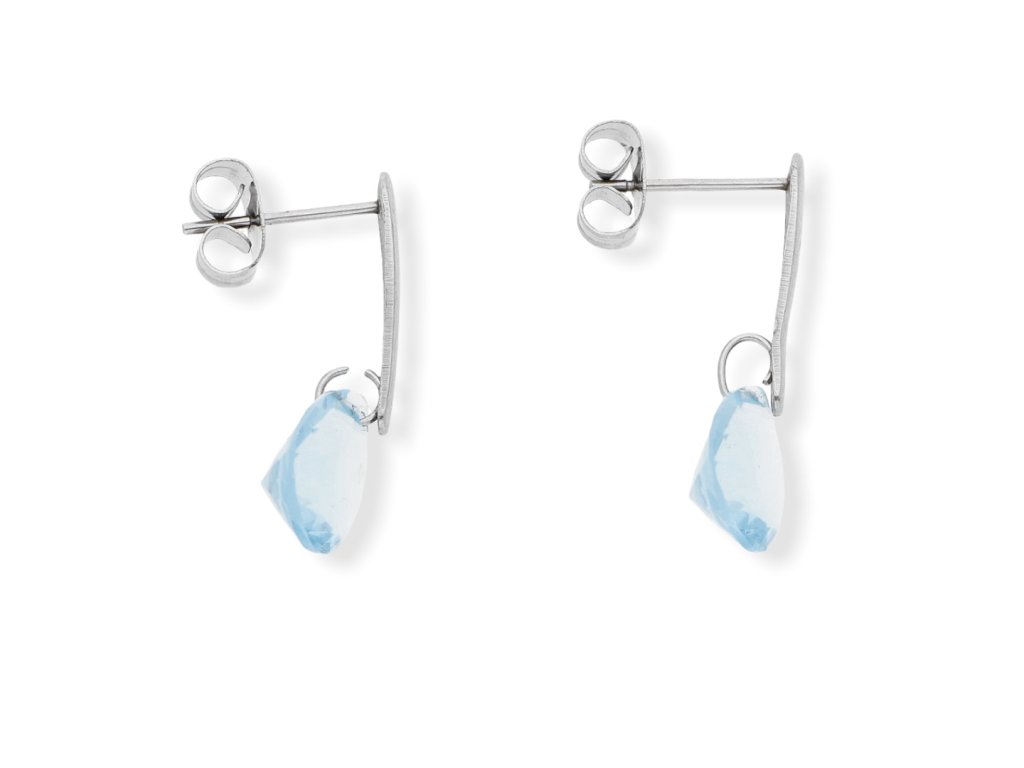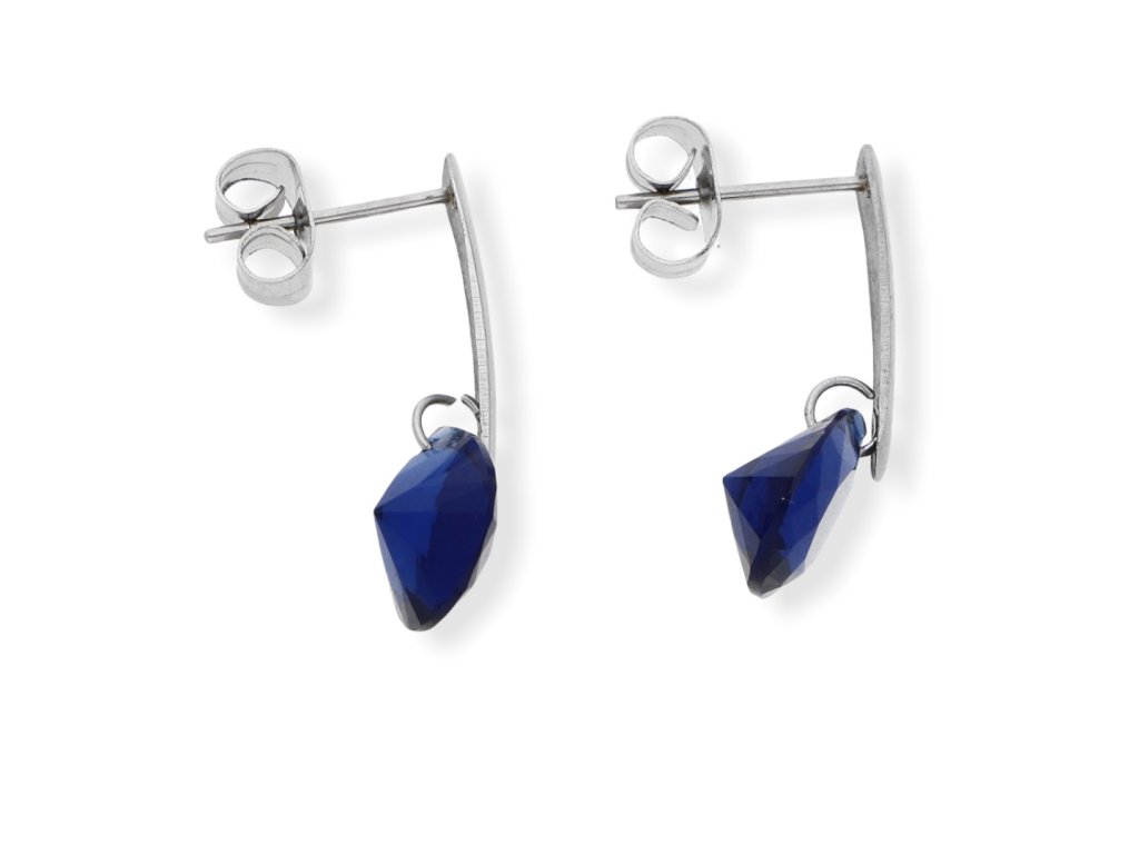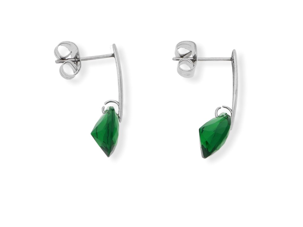 Ocelové náušnice s kamínkem. Rozměr náušnic celková délka 2 cm, kamínek 7 x 7 ve tvaru slzy.