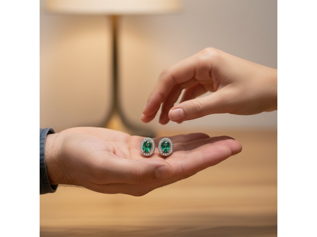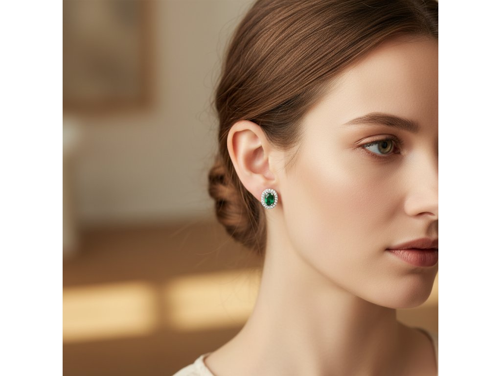 Ocelové náušnice se zeleným zirkonem-Nerina-EW 331