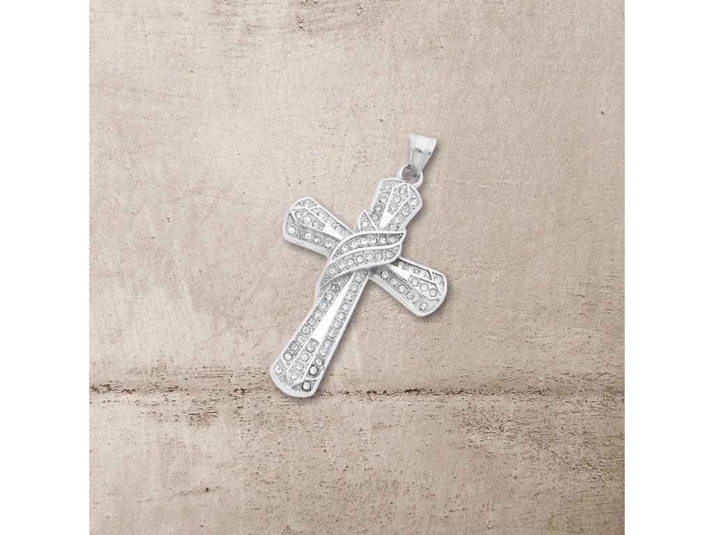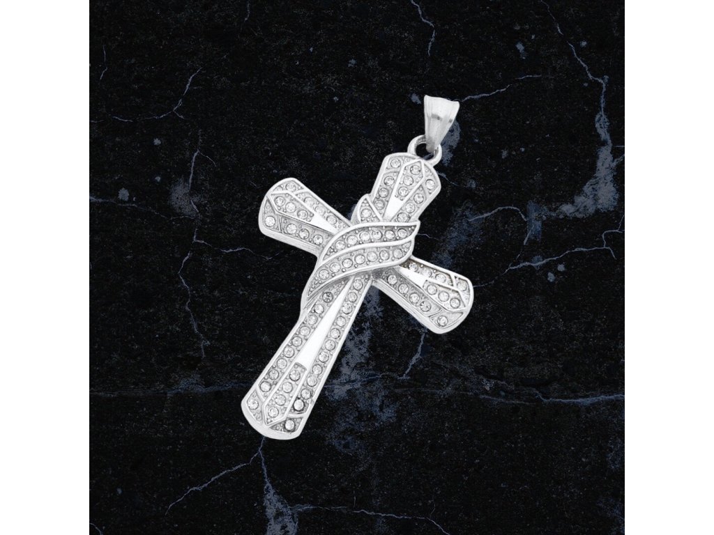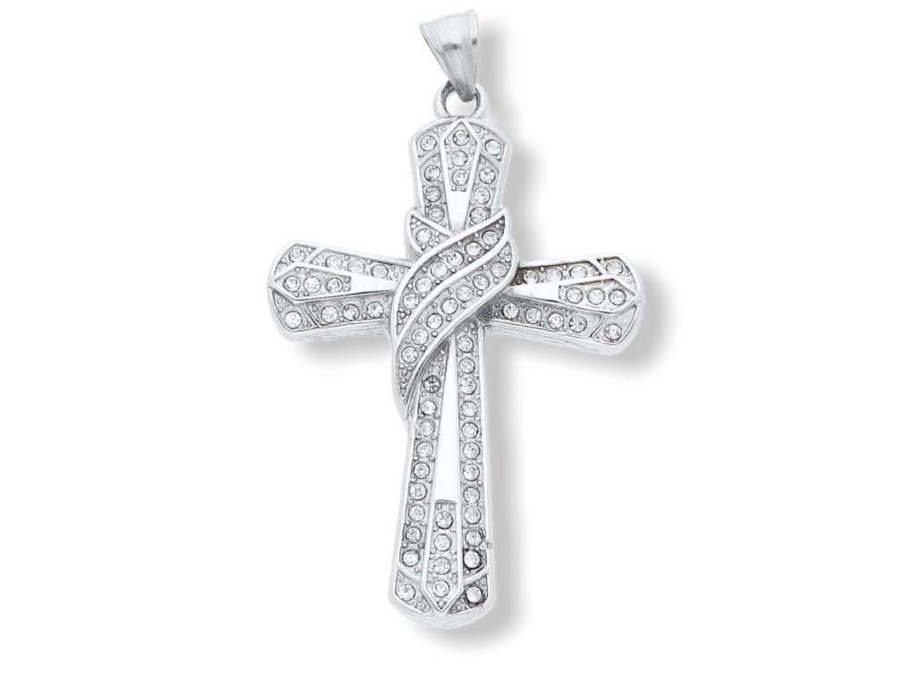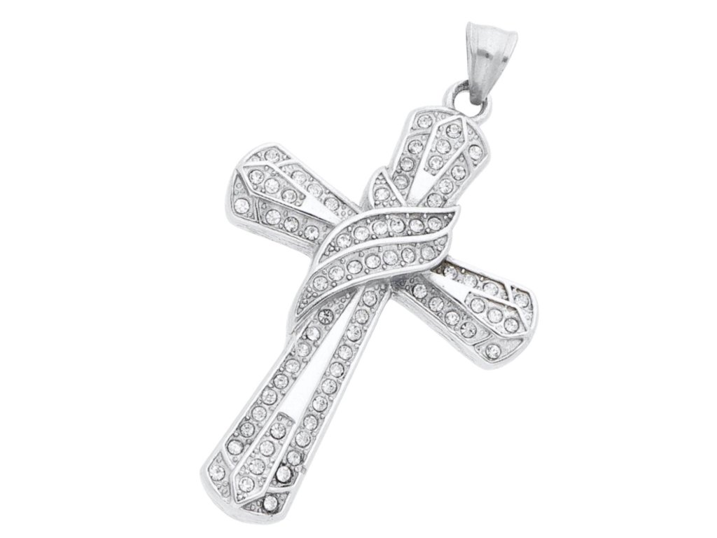 Ocelový kříž ve stříbrne barvě se zirkony.