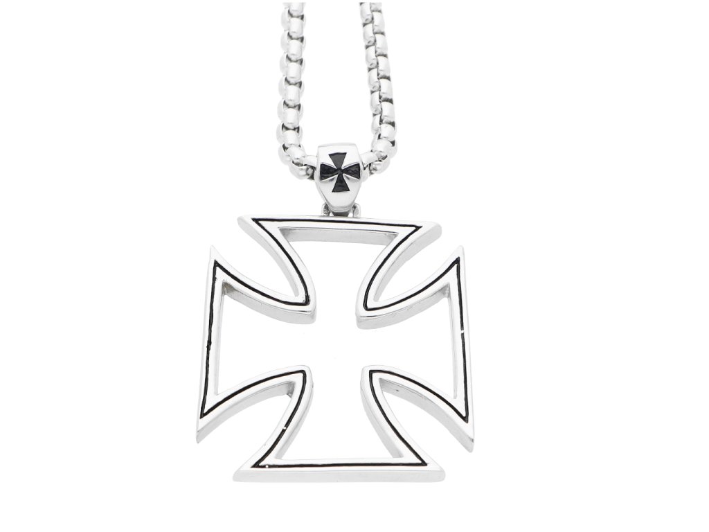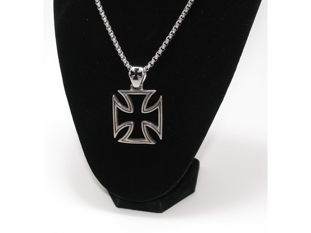 Ocelový motorkářský přívěsek Maltézský kříž s řetízkem