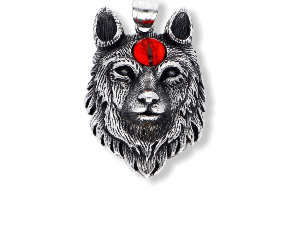 Ocelový přívěsek vlčí hlava s řetízkem KHB317 + dárkové balení