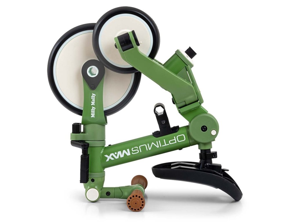 Dětská tříkolka a odrážedlo 5v1 Milly Mally Optimus Max je skvělou volbou jako první vozítko pro vaše dítě. Stabilní tříkolová konstrukce poskytuje bezpečnost a pomáhá dětem získávat nové pohybové dovednosti. Jakmile dítě zvládne základy jízdy a nepotřebuje pomoc rodiče prostřednictvím vodicí tyče, lze vozítko snadno přizpůsobit – přidat pedály nebo jej přeměnit na klasické odrážedlo. Model Optimus Max je vyroben z kvalitních materiálů. Pěnová kola zajišťují pohodlnou a tichou jízdu. Nastavitelná výška a vzdálenost sedadla umožňuje přizpůsobit vozítko růstu dítěte. Omezovač nadměrného otáčení řídítek zvyšuje bezpečnost a pomáhá předcházet pádu. Tříkolka je vybavena také praktickou vodicí tyčí pro rodiče, která pomáhá při jízdě například při únavě dítěte nebo při jízdě ze svahu. Vodicí tyč má 4 stupně nastavení výšky a lze ji snadno demontovat, když dítě povyroste. Vozítko je vhodné pro děti od 12 měsíců. Pomáhá rozvíjet motoriku, posiluje svaly nohou a zlepšuje koordinaci pohybů. Zároveň připravuje dítě na jízdu na klasickém dětském kole. Kompaktní skládací konstrukce usnadňuje transport i skladování. Optimus Max v 5 krocích: 1. tříkolka s pedály jako opěrkami nohou a s vodicí tyčí pro rodiče 2. tříkolové odrážedlo 3. tříkolka s pedály na předním kole 4. odrážedlo s vodicí tyčí pro rodiče 5. klasické odrážedlo Vlastnosti: ergonomické a pohodlné sedadlo nastavitelná výška sedadla 3 stupně nastavení vzdálenosti sedadla 3bodové reflexní bezpečnostní pásy možnost demontáže opěrky sedadla skládací konstrukce pro snadné přenášení pěnová kola pevný ocelový rám vodicí tyč pro rodiče se 4 stupni nastavení pedály na předním kole s možností uložení do držáku pedály mohou sloužit také jako opěrky nohou nastavitelný sklon řídítek omezovač nadměrného otáčení řídítek skládací zadní kola vhodné pro děti od 12 měsíců splňuje evropské bezpečnostní normy Technické údaje: výška: 51 cm délka tříkolky: 66 cm délka odrážedla: 72 cm šířka: 48,5 cm průměr kol: přední 21 cm, zadní 15 cm vzdálenost sedadlo – pedály: 30 / 31,5 / 33 cm vzdálenost sedadlo – řídítka: 11 / 13 / 15 cm výška vodicí tyče: 93,5 – 104 cm výška opěrky zad: 19 cm šířka rukojeti: 26 cm šířka řídítek: 27 cm výška opěrky nohou od země: 12 cm vzdálenost opěrky nohou od sedadla: 23 cm výška sedadla: 30 – 32 cm maximální nosnost: 25 kg hmotnost: 3,8 kg Rozměry balení: 33 × 18,5 × 43 cm hmotnost balení: 4,6 kg Bezpečnostní upozornění: Výrobek je určen pro děti od 12 do 36 měsíců. Maximální nosnost 25 kg. Používejte ochranné pomůcky (helmu, rukavice, chrániče kolen a loktů). Nepoužívejte v silničním provozu. Dítě musí být během používání vždy pod dohledem dospělé osoby. Obal není hračka – uchovávejte jej mimo dosah dětí, aby nedošlo k udušení. Výrobek používejte pouze na bezpečných místech (např. doma, na dvoře nebo na dětském hřišti).Doplňkové parametry