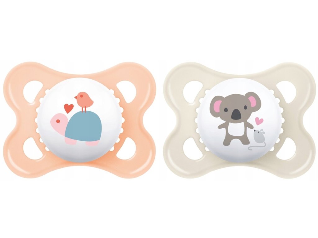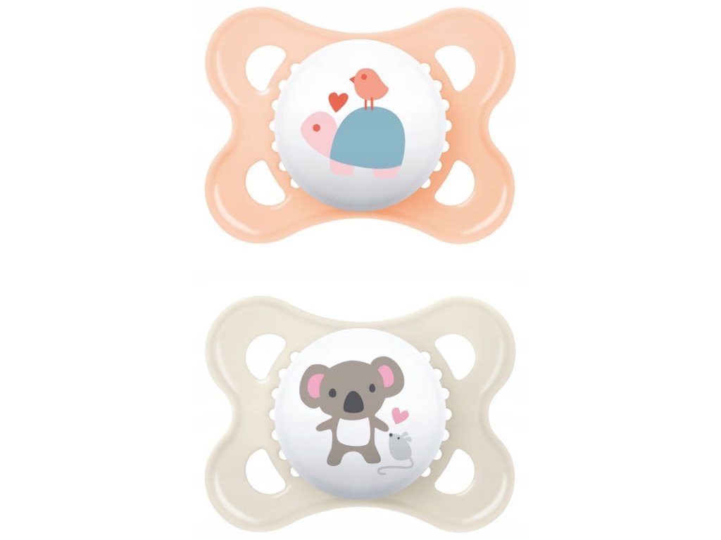 Ortodontický silikonový dudlík MAM, Original Girl 2-6 m, smetanová/meruňková, 2 ks