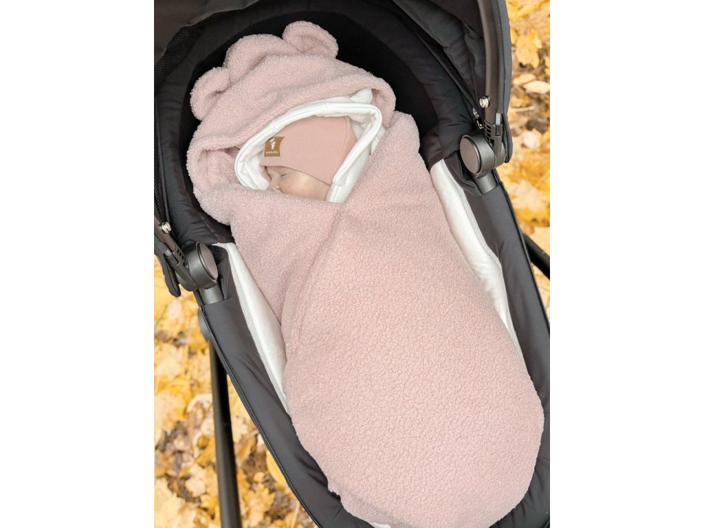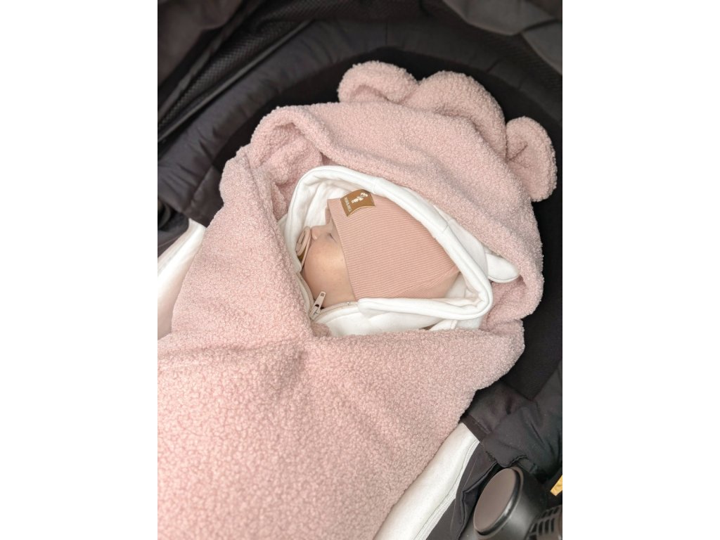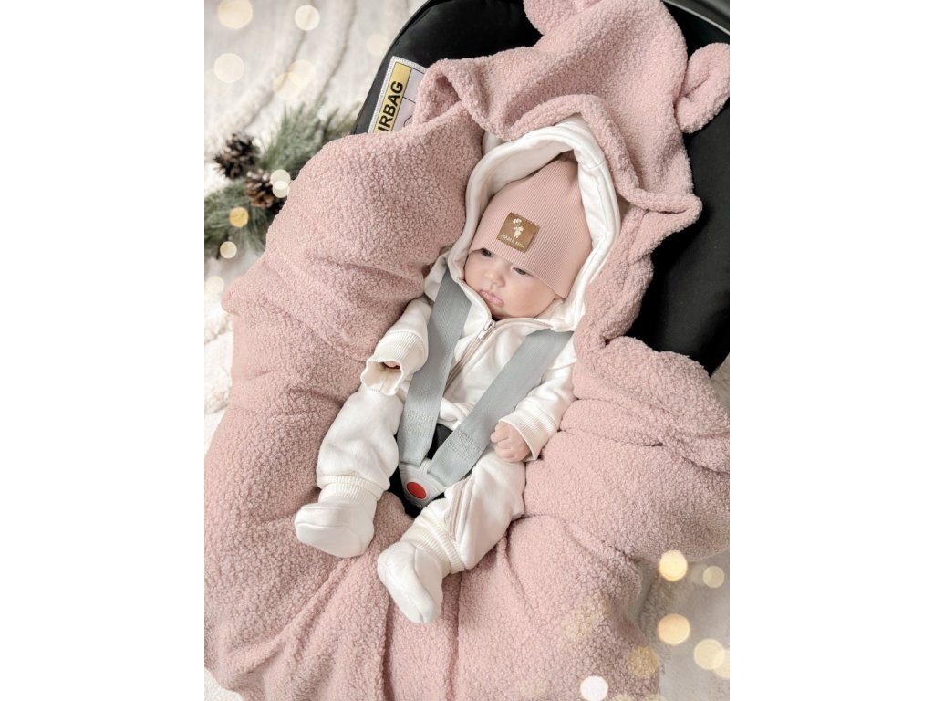 Oteplený fusák, deka s kapucí do autosedačky Beránek, Baby Nellys - pudrová, růžová