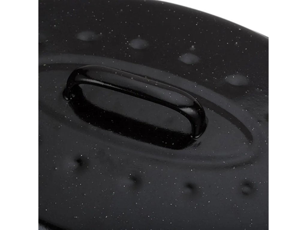 Oválný smaltovaný pekáč o objemu 6 litrů je ideální pro každodenní použití v kuchyni. Pekáč je vyroben z uhlíkové oceli a smaltovaného povlaku. Smalt je materiál, který se rychle zahřívá a pomalu ochlazuje, čímž udrží vařené jídlo déle teplé. Zajišťuje rovnoměrné rozložení tepla během pečení. Vykazuje velkou odolnost proti poškrábání a vysokým teplotám, je lehký, snadno se přenáší a čistí. Pekáč má dvě boční rukojeti pro snadné přenášení a je vybaven praktickým víkem s rukojetí. Vhodný do myčky