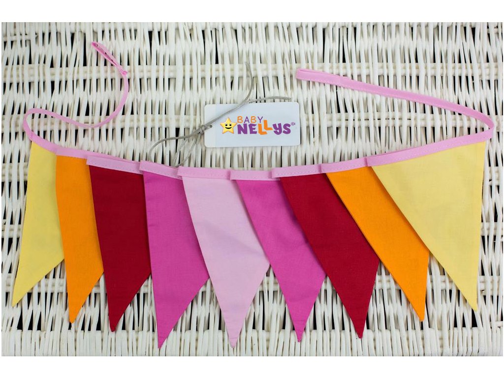Ozdobná girlanda Baby Nellys ®. Materiály: 100% bavlna. Barvy: dle obrázku. Sada obsahuje - ozdobnou girlandu v délce cca 200cm, výška dekorace cca 16cm. 1. Jakost.Doplňkové parametry