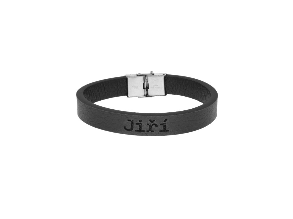 Pánský kožený náramek černý se jménem Jiří + dárkové balení
