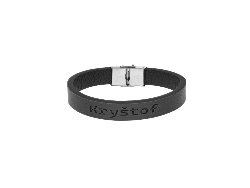 Pánský kožený náramek černý se jménem Kryštof + dárkové balení