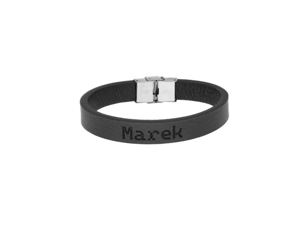 Pánský kožený náramek černý se jménem Marek + dárkové balení
