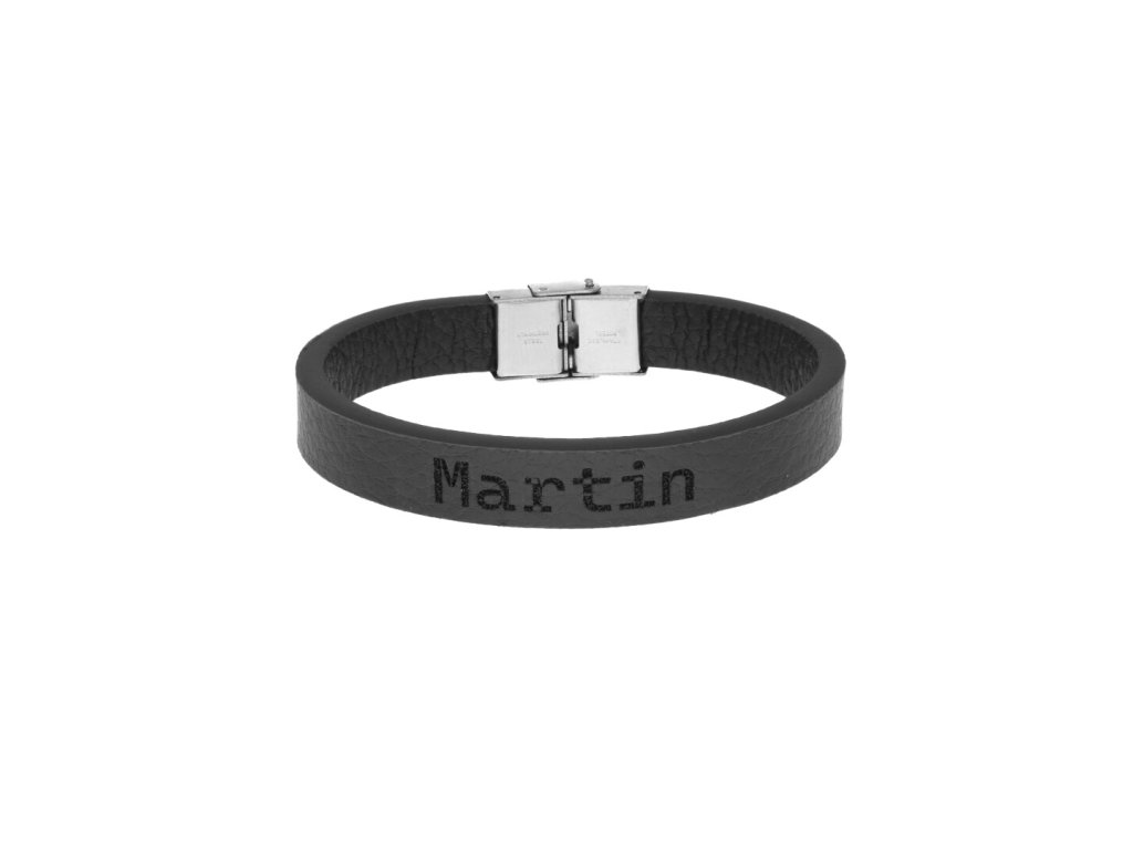 Pánský kožený náramek černý se jménem Martin + dárkové balení