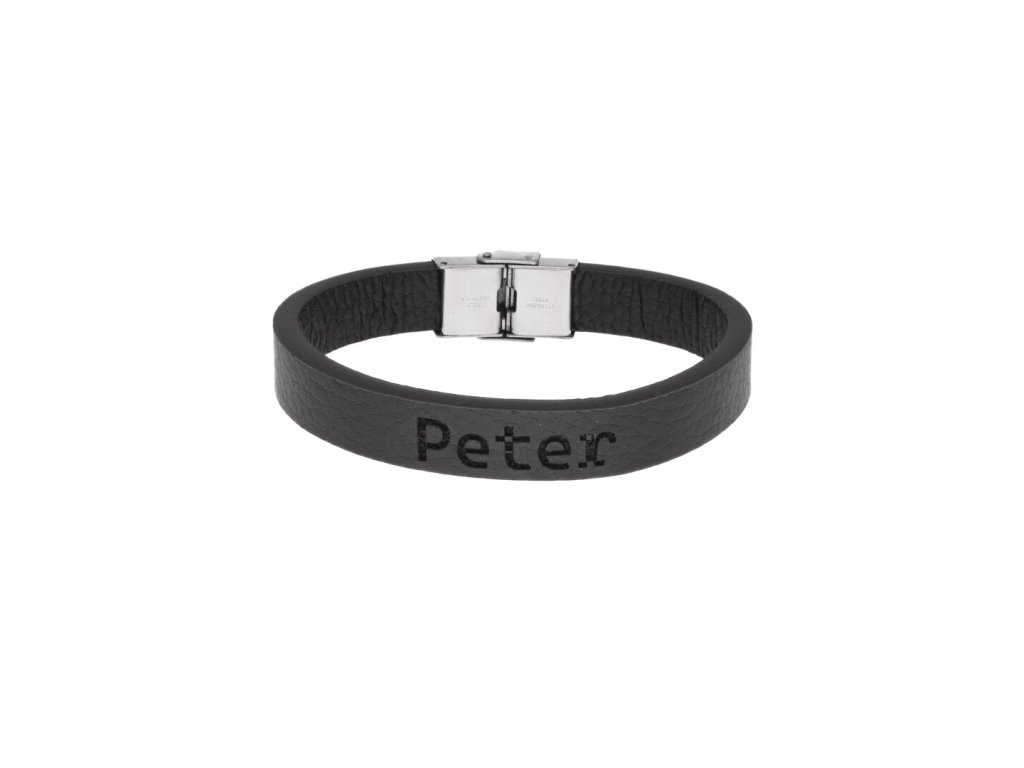 Pánský kožený náramek černý se jménem Peter + dárkové balení