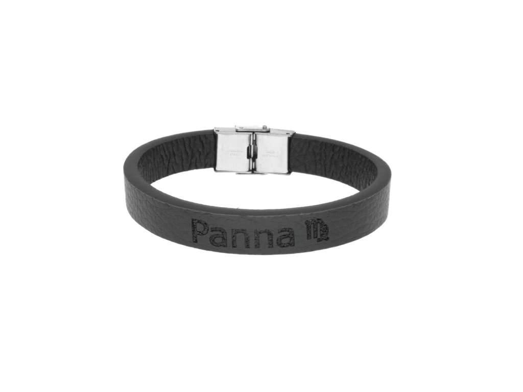 Pánský kožený náramek černý se znamením Panna + dárkové balení