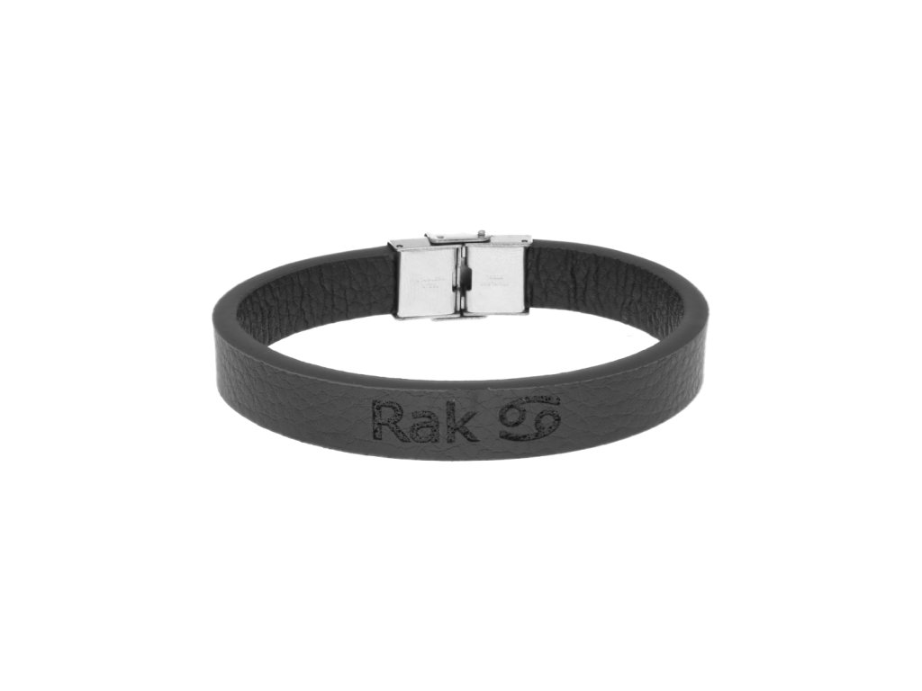 Pánský kožený náramek černý se znamením Rak + dárkové balení