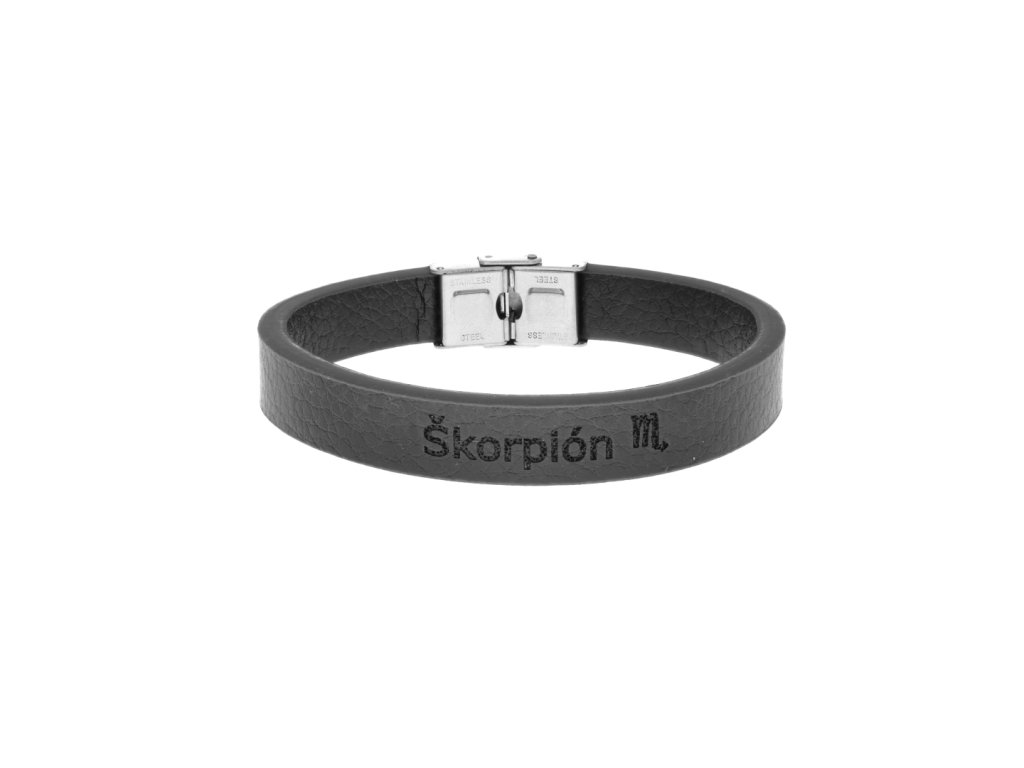 Pánský kožený náramek černý se znamením Škorpión + dárkové balení