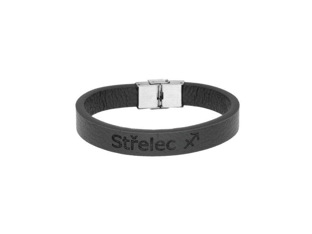 Pánský kožený náramek černý se znamením Střelec + dárkové balení